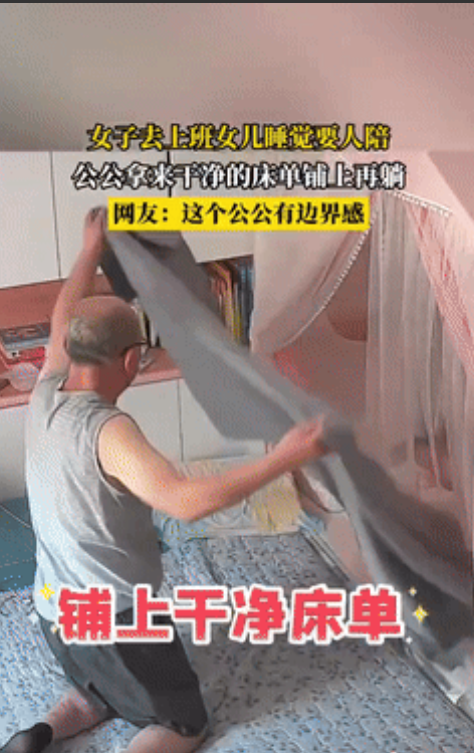 “真有边界感!”山西一女子上班前,特意叫来公公到屋里陪睡觉的女儿,没想到,公公并没直接躺在床上照看孩子,而是拿出他早就准备好的床单,铺在床面后才上床,网友:这就是骨子里对他人的尊重和教养! 据神州新闻7月16日报道,那天早上,3岁的小姑娘还窝在小蚊帐里酣睡,李女士却站在门口犯了难——单位今早有重要会议,可孩子睡觉认人,没人陪在边上,醒了准得哭鼻子。