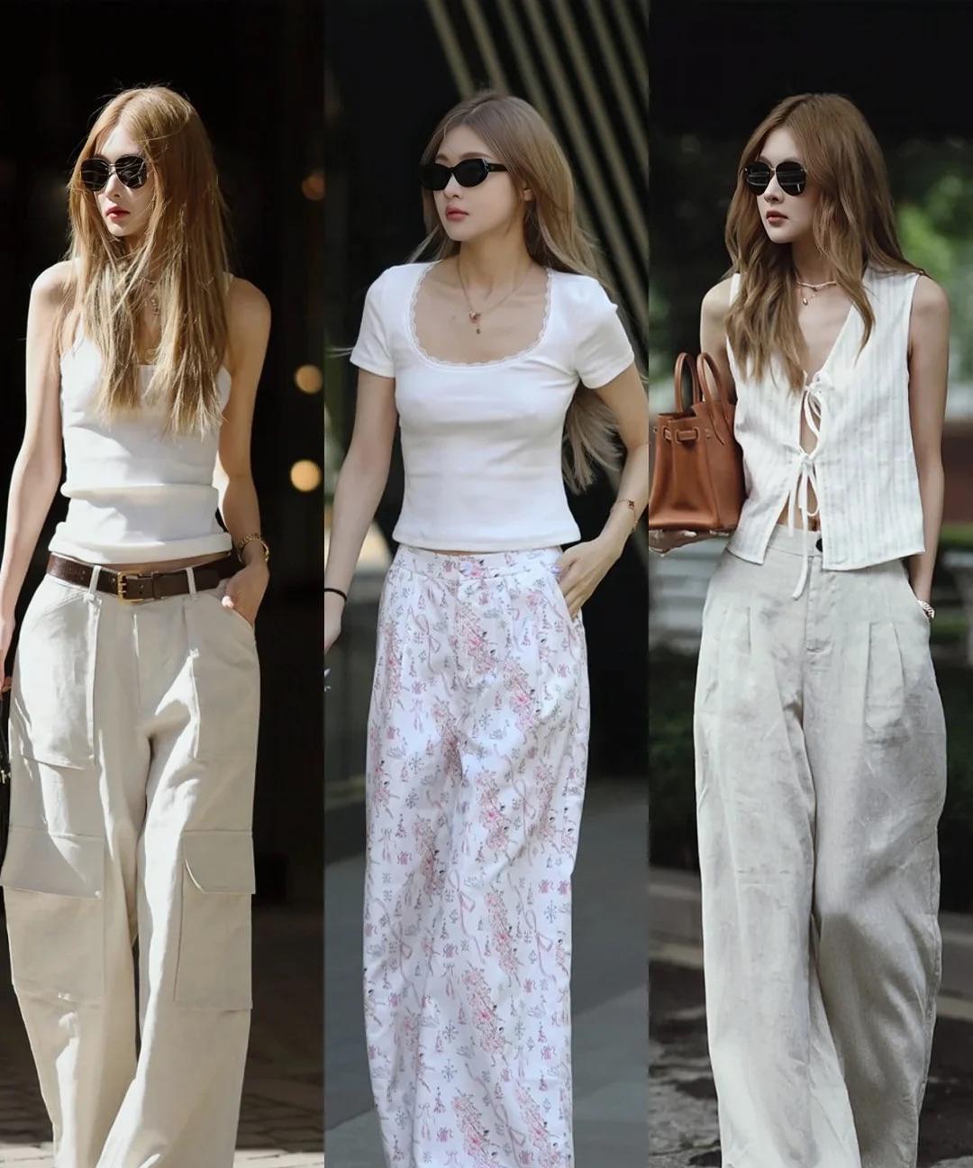 简单时髦出街,太喜欢这样的简约风了! 白色短裤超百搭,上衣随意穿不出错,出街时还可以模仿博主加入中筒袜球鞋,更有穿搭博主的氛围。 白色的阔腿拖地裤在夏天也很受欢迎,配短款T 恤显瘦时髦,松弛感也在线! 阔腿工装裤更街头感,选择浅杏色米白色增加清爽感,加入腰带提升气场,穿衣更时髦!