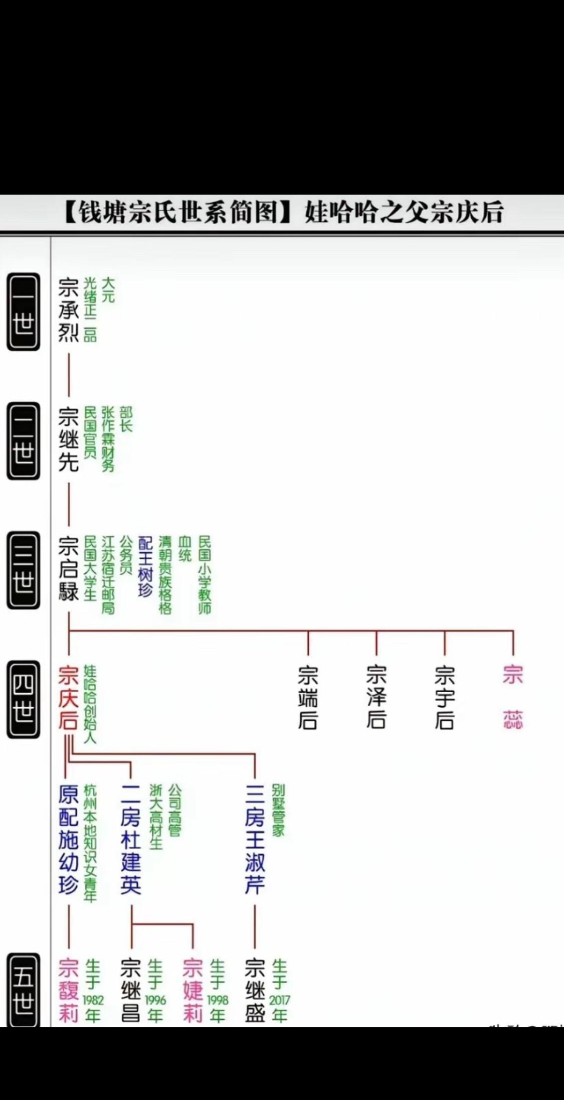 看到这个族谱才知道宗庆后是宗泽的后人,朋友们知道宗泽是谁吗?大家都听过评书岳飞传吧?里面有一位老帅就叫宗泽,是他慧眼识英雄提拔的岳飞,不过评书里面的宗泽儿子叫宗芳孙子叫宗良,和这个族谱有出入,应该是这个族谱里的名字真实!图二宗庆后的一世祖可是光绪正一品,朝中重臣!不知道宗庆后九泉之下知道不知道现在娃哈哈的遗产纠纷![作揖][作揖][作揖]#宗庆后子女的继承权纠纷谁更占理# #宗馥莉在遗产风波中应承担什么责任# #娃哈哈家产之争的来龙去脉# #宗氏家族的继承纷争你怎么看#
