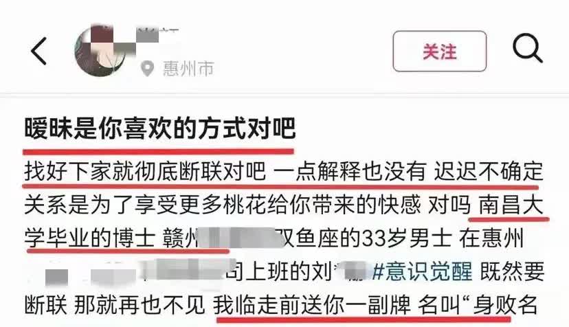 太重感情的人总是更容易受伤!一女子和男友分手后引发心梗去世。 据悉,该女士姓肖,2020年就曾因丈夫去世悲痛过度,引发心梗,所幸抢救回来了。 几年后,肖女士开始发展新的感情,没想到男友却若即若离,始终不愿意确定关系,该还玩起了失联。肖女士悲痛之中再次心梗,不幸离世。 网友评论: 不要把爱情当全部,那样会失望的。人的一生很长,还有其他值得我们珍惜的,比如:亲情、友情及自我价值。 还记得窦文涛在圆桌派里分享过,自己失恋后心疼。刚开始以为是情绪,后来检查才知道,因为心太疼,疼出了一个窟窿。从那以后,他就不敢碰爱情了,太重感情,失恋要人命啊! 我也经历过,在发现我老公撩骚的时候,感觉心脏那个部位很痛很痛,蹲在地上,话都说不出来,差点没缓过来,经历了那一次后就不爱了,现在都是无所谓的态度。 正常情况下男人会比女人更想确定关系,不确定关系,90%都有鬼,不管男女都一样。
