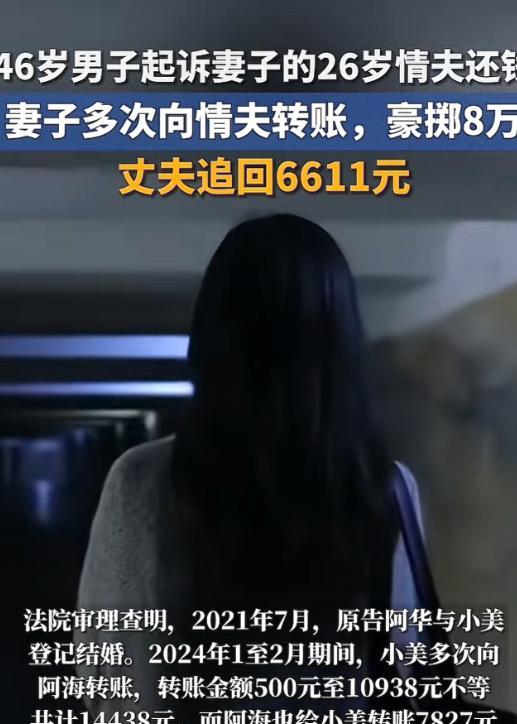 在法庭上,46岁的男子阿华对小伙吼道:“你花的所有钱,都是我们夫妻的共同财产,必须归还!” 原来,阿华发现小伙和自己的妻子频繁联系,还多次收到妻子的转账,而自己一点都不知情,作为男人,他忍受不了这种事情的发生,于是要和妻子离婚,并且要回属于自己的那部分钱! 阿华在2021年7月的时候就与妻子小美登记结婚。那时候他是想和小美好好过日子的,一起努力挣钱,养孩子,养家。可是阿华这样想,小美却不这样想。 小美多次前往KTV唱歌,也会去健身房锻炼身体。她与26岁的小伙阿海初次见面的时候,小美就喝多了,头晕眼花的,看见阿海后就向他求助,让其帮忙结账。 不过,小美是给阿海转钱的,没有让他自己掏腰包。阿海看着小美喝得醉醺醺的,有求于自己,也不好开口拒绝,就把钱收了,帮她结账。可没想到结完账之后,小美不走,心情非常低落。 阿海还以为小美是遇到什么事情了,便主动关心她,没想到从小美口中得知,她失恋了,健身教练不和她联系了,很难受,心里过不去。关键是,小美不仅投入了金钱,还花了很多时间,办健身卡,还花钱给买车。这时候,阿海才知道小美是为情所伤,赶紧安慰她。 有一个年纪轻轻、长相帅气的弟弟,在身边安慰自己,这是多么“难得”的事情!小美在阿海的安慰下,心情瞬间好多了。从这时候开始,他们俩就越走越近,一起吃饭,一起唱歌,一起去酒店。 可在这个过程中,阿海并不知道小美是有家庭的,只知道小美刚分手,还以为她没有结过婚,是单身的情况,所以才和小美接触。 但是当阿海后面得知小美是有家庭的情况后,立马提出了断绝关系,不再联系,阿海知道这样做是不对的,可是小美却不同意分手,她给阿海转账,有时候给500,有时候给10938元。从2024年开始,小美多次花钱在阿海身上,而阿海也给小美转过钱,不过大多数都是小美转的。 阿海见小美不愿意分手后,也就没有在表明态度,而是一直联系着。可是纸包不住火,事情总暴露的一天。当小美丈夫阿华得知她的所作所为后,不能忍受提出了离婚。并且发现小美给阿海转账后,更是不给他们留情面,要讨回属于自己的钱。 于是阿华将阿海告上法庭,要求他必须将收到的钱归还,因为那些钱不是小美自己的钱,而是和阿华共有的财产,她在没有经过阿华的允许就把钱转给阿海,这是不对的。 最终法院判决:阿海返还6611元。因为小美给阿海转的钱一部分48084元是用在吃饭住宿和KTV,这没有办法证明是给阿海的。另一部分23105元是直播间打赏费用,也无法证明。 这件事发生后,网友们都在说:要回一分是一分,不能赔了夫人又赔钱,及时止损,以最小代价解决问题! 这起事件也为所有已婚人士敲响警钟,婚姻需要双方共同守护,任何一方的放纵都可能引发这般不堪的后果。违背道德者必将受到舆论的谴责,而妄图钻法律空子的人,也终究逃不过法律的制裁! 对此,你们怎么看? 信源:潇湘晨报
