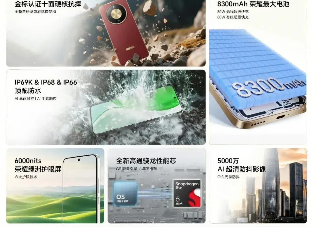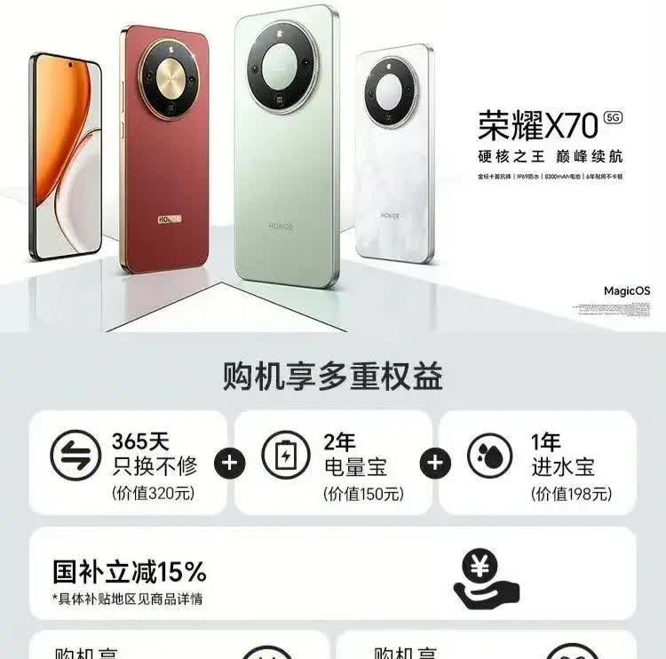地表最强的千元机荣耀X70今天开售,国补后最低1189元起,行业首个金标三防抗摔