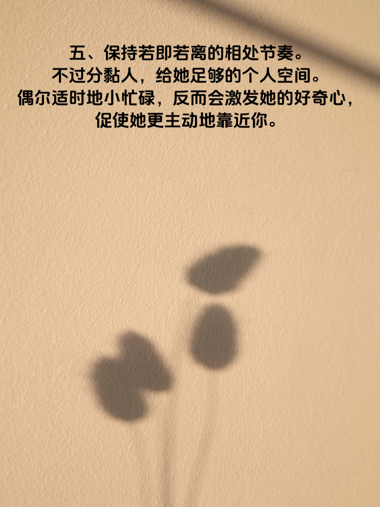一、想要让女神主动示好,首先得展现自身独特魅力。拥有扎实的内涵,比如广泛的知识储备,能在交流时侃侃而谈,吸引她的注意。良好的修养也很关键,礼貌待人,尊重她的想法和感受。 二、打造出色的外在形象同样重要。保持整洁得体的着装,根据不同场合搭配适宜。注重个人卫生,发型清爽,面容干净。自信的姿态更是加分项,挺胸抬头,步伐稳健,传递出积极向上的精神风貌。 三、积极拓展共同兴趣爱好。了解她喜欢的事物,然后自己也去钻研。这样就有了更多共同话题,能频繁互动交流,增进彼此了解。 四、在相处中要学会适时给予赞美。真诚地夸赞她的优点、成就,让她感受到你的欣赏。但注意赞美要恰到好处,不能过于浮夸。 五、保持若即若离的相处节奏。不过分黏人,给她足够的个人空间。偶尔适时地小忙碌,反而会激发她的好奇心,促使她更主动地靠近你。