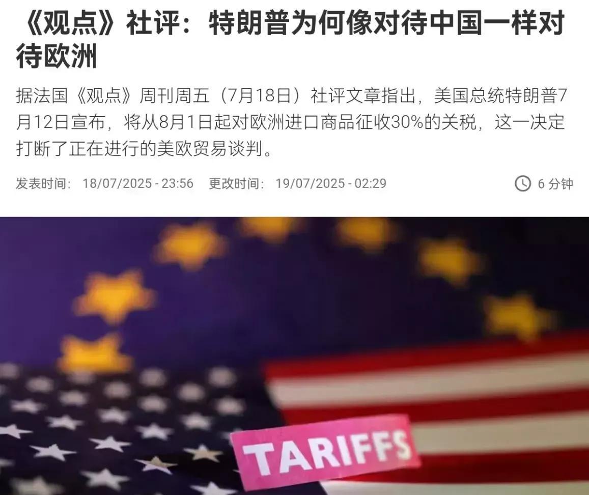 欧洲觉得自己非常委屈!来自7月19日法国媒体的消息说,欧盟这么多年跟随美国,但是