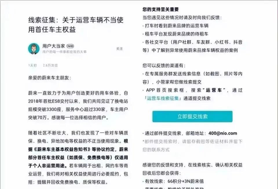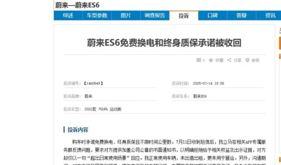 “彻底解释不清了!”河南,男子开60万车出门,突然收到车企警告,提示他的终身权益被收回,理由是:一年跑17万km,超出普通用户日常使用!说白了就是感觉男子跑多了,怀疑他有其他不正当的开车行为(出租或营运)!车主吐槽:玩不起?真的太背刺了! 这位车主姓高,2020年花60多万买了辆蔚来ES8,当时看中的就是合同里写的终身质保、终身免费换电。 那时候新能源车还没现在这么普及,敢花这个价钱买电车,算是对品牌挺有信心的早期支持者。 这五年里,他开着车跑遍了周边城市,换电站跑了多少趟自己都记不清,车子倒是没掉过链子,直到今年7月收到那条短信——所有终身权益突然被取消,连个具体原因都没说清。 高先生一开始以为是自己倒霉,后来在车友群里一聊才发现,不少人都收到了同样的通知。大家最气的是那个“超出普通用户日常使用”的说法。 他自己算过,前四年平均每天跑75公里,在大城市里,这也就是从城东到城西通勤的距离。 最后一年跑了17万公里,听着吓人,其实是因为工作需要经常在周边城市来回跑,偶尔还带着家人自驾游,根本没搞过什么营运。 “营运车辆都得在车管所注册登记,他们拿不出我搞营运的证据,就凭里程数说了算?”高先生越想越不对劲。 购车时销售把“不限时间、不限里程”说得明明白白,合同里也没写任何里程限制,现在突然说“超出日常”,这“日常”到底是谁定的标准? 有车友翻出蔚来之前发的公告,说要打击“不当使用权益”的行为,可具体怎么界定“不当”,谁也说不清楚。 有车主猜测,可能是换电业务亏损太大——据说单个换电站一天得换30次电才能保本,现在很多站点每天还不到20次。 企业可能觉得像高先生这样换电频繁的用户太“费钱”,才想出这么个办法。 可问题是,老车主当初掏真金白银支持品牌,图的就是那份承诺。2020年60多万买辆电车,相当于提前给品牌“投资”,现在企业做大了,反而把早期支持者的权益说收就收。 就像高先生说的:“早知道有里程限制,当初何必花这个钱?‘终身’俩字,合着就值五年?” 更让人不舒服的是合同里的模糊地带,用户手册只说“用于营运会受限”,却从没提过“年里程上限”这种事。 这种模糊的条款,等于把解释权全攥在企业手里。有网友打比方:“就像你去餐厅办了终身免费续杯的卡,喝了五年突然被说‘你喝太多了,卡作废’,换谁能乐意?” 其实私家车年均跑1.5万公里只是个平均数,有人每天代步只要5公里,有人跨城通勤一天就得上百公里,凭什么用一个数字框住所有人? 高先生最后一年日均465公里,可能是住在郊区每天往返市区,也可能是多跑了几趟长途,这些都是正常的个人使用场景。 现在蔚来新出的车早就取消了终身免费换电,改成了付费套餐,这本身没问题。但对老车主来说,当初签的合同就是契约,不能因为企业后来改了政策就不算数。 早期车主在品牌最难的时候选择相信,本该是最该被珍惜的群体,现在却被当成“负担”甩开,难怪有人说“这不是玩不起吗?” 说到底,企业搞活动、给承诺都没问题,但得把规则说清楚。 要是担心用户“用太多”,当初就该在合同里写明白“每年限跑3万公里”,而不是用“终身不限”吸引消费者,等出了问题再找补。 做生意讲究一诺千金,尤其是对那些在你还没站稳脚跟时就伸出援手的人,更该守住这份信任。 不然的话,伤的可不止是几个老车主的心,更是整个品牌的口碑。