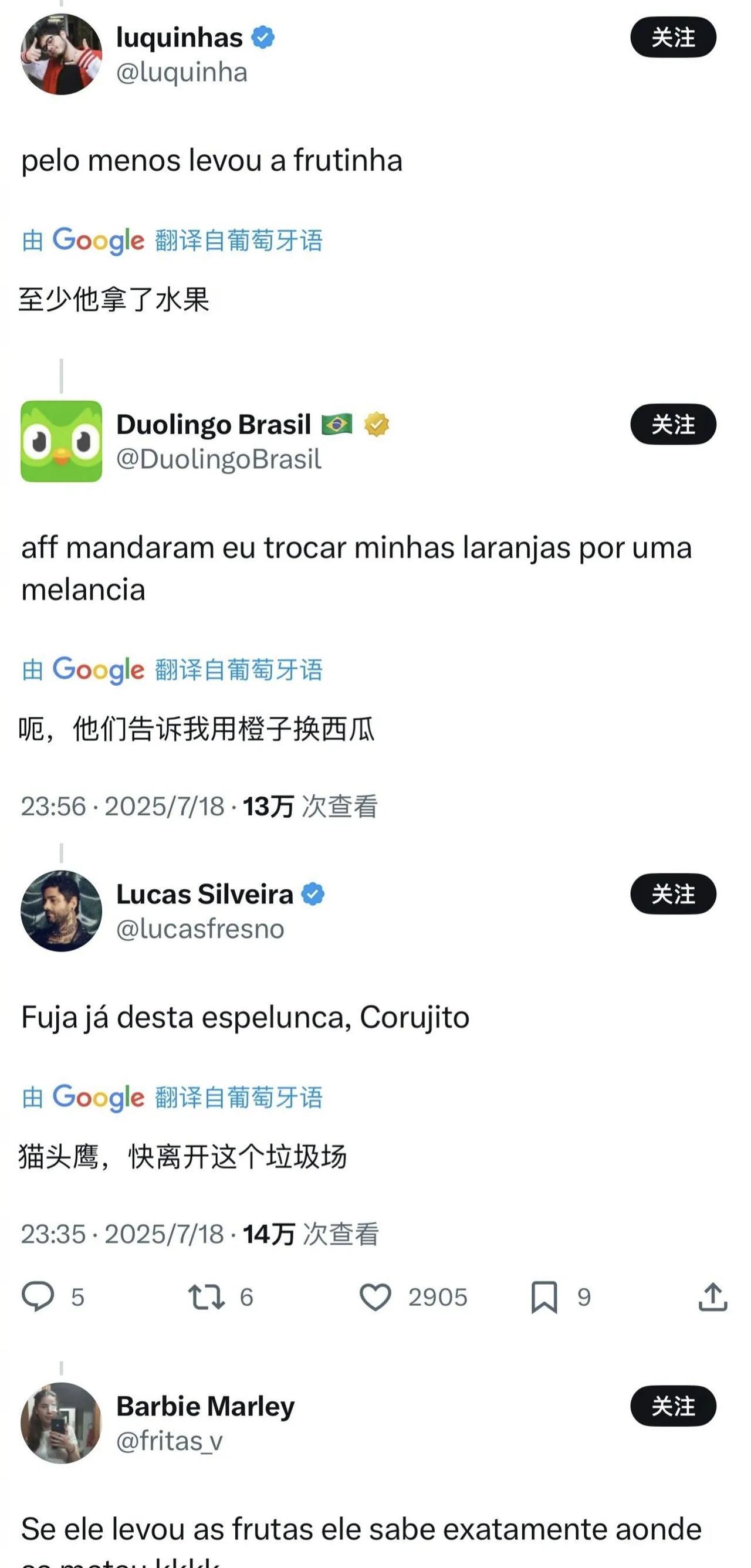 多邻国可真是啥热点都敢蹭,运营团队要跑到这鬼地方教中文是吧?小绿鸟甚至还拎着一袋水果,入乡随俗细节拉满,更难绷的是评论区一帮老外也对此梗烂熟于心。当真是好事不出门,坏事传千里……