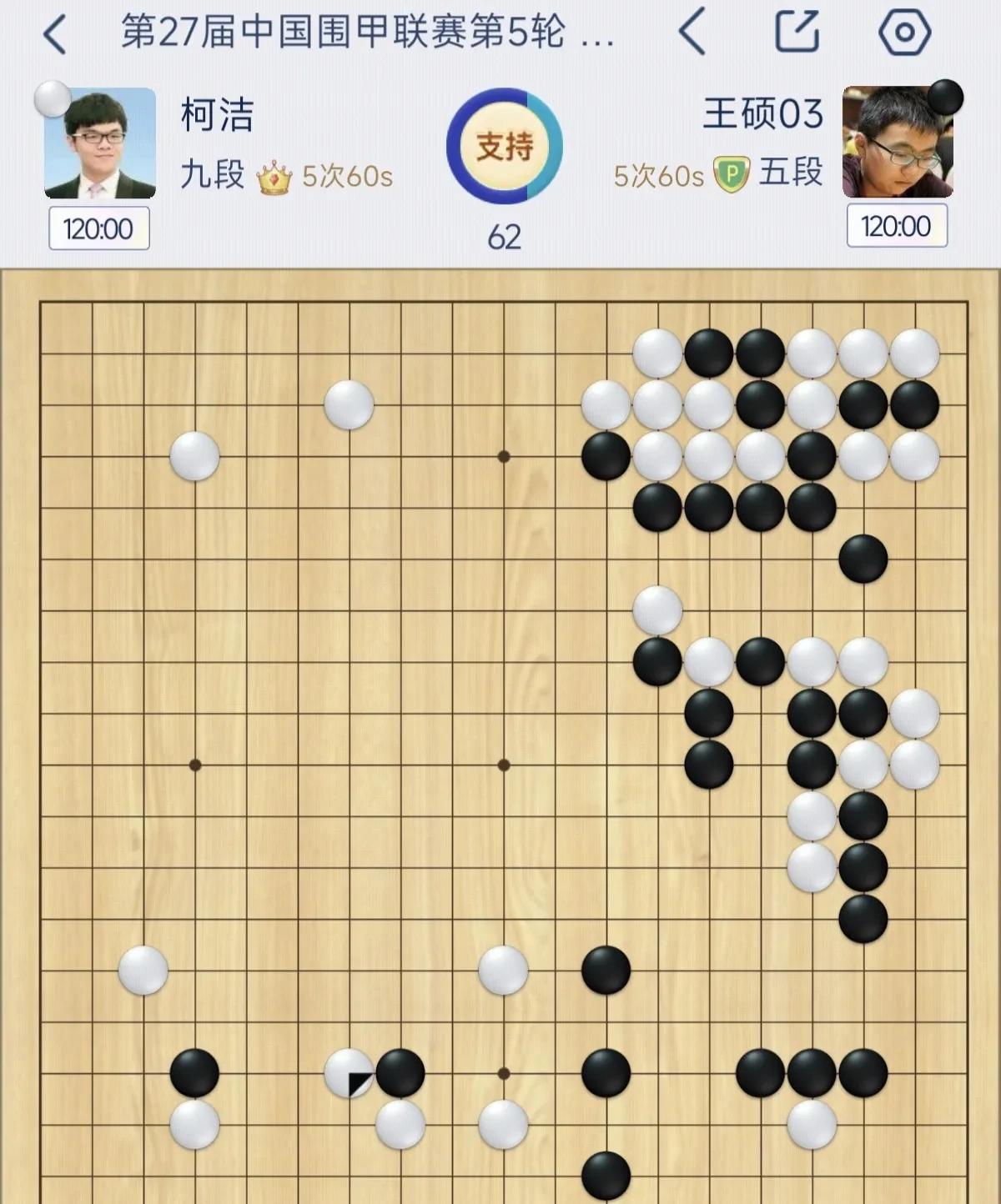 柯洁终于赢了一把! 第27届中国围甲联赛第5轮比赛,深圳龙华的柯洁终于