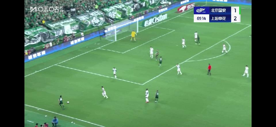 在复盘国安输给申花这场比赛时,这两个场景很好的能说明国安为什么输。 国安在进攻时