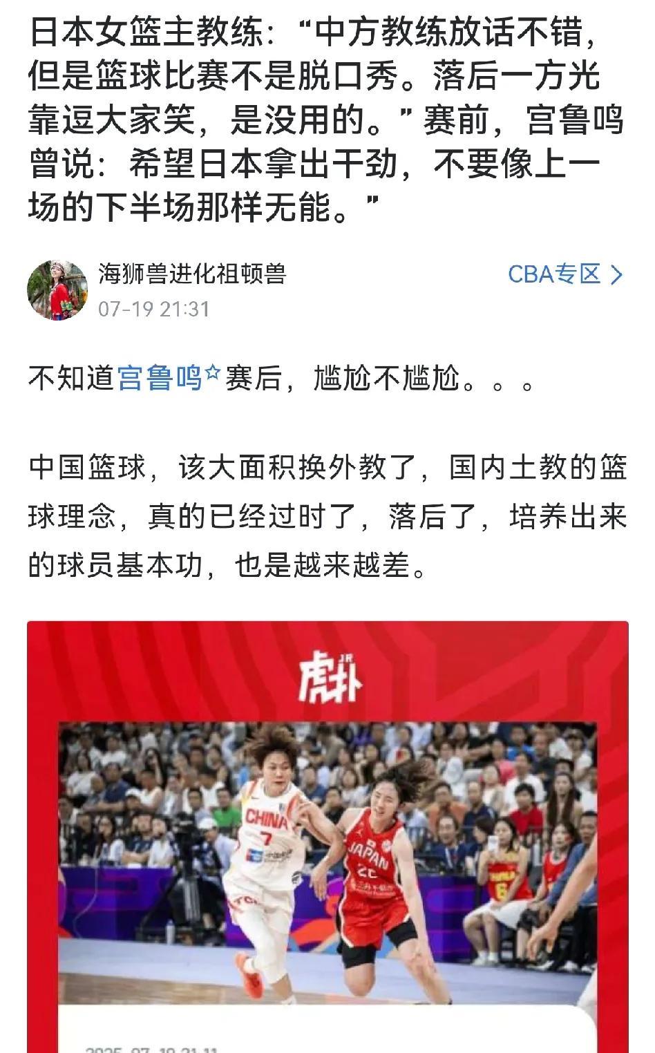 日本教练回应宫鲁鸣像笑话!就问宫鲁鸣现在的脸疼不疼还有什么可说的!太傲慢自大篮球