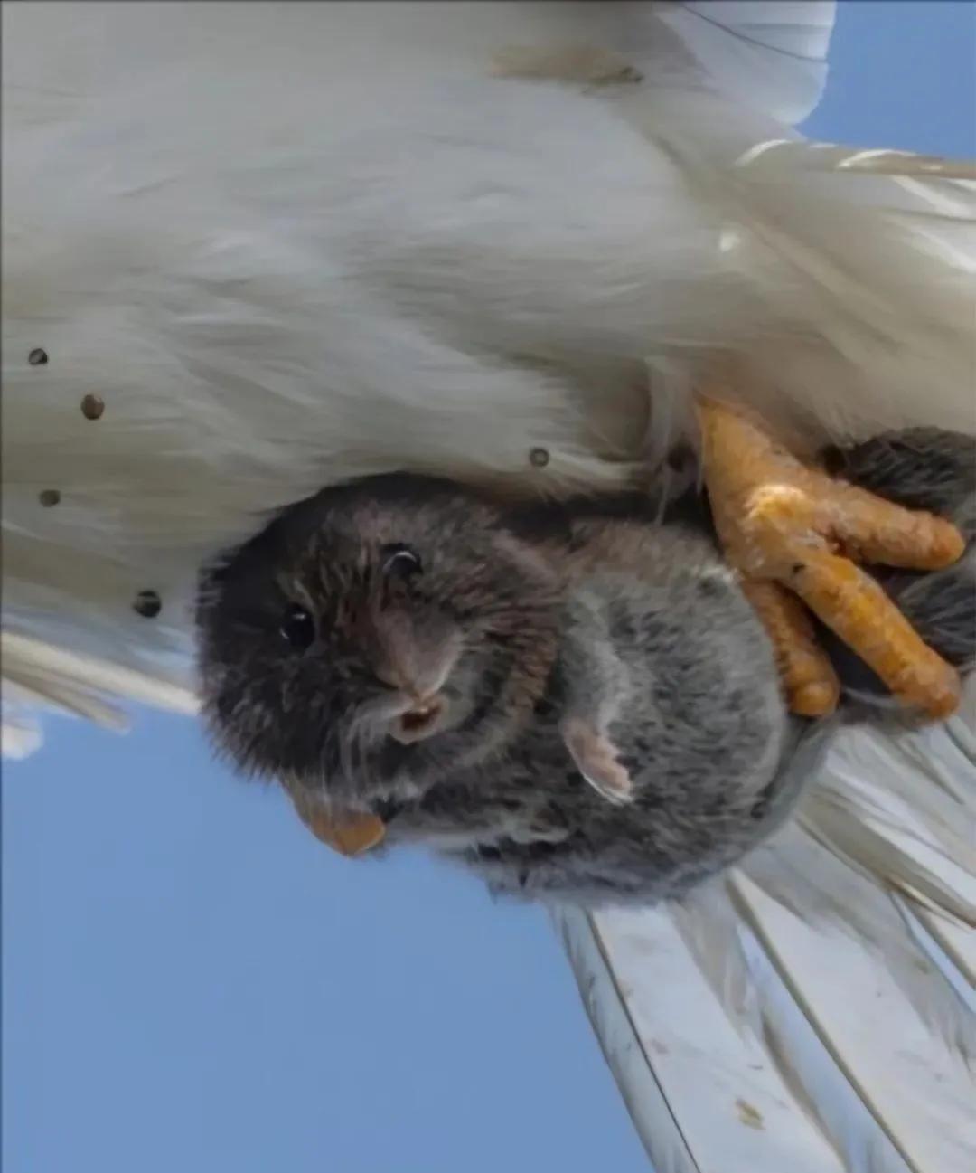 一只老鼠正出门觅食,没想到高空中的老鹰已经发现了它,只见老鹰猛的一个俯冲,直奔老鼠而来,老鼠还没等回过神来就被老鹰的利爪死死抓住,老鹰没有直接吃掉老鼠,而是抓着老鼠飞了起来,刚才昏过去的老鼠被天上的风一吹瞬间清醒了,它低头看着地面上的家越来越小,越来越远,心里很难过,它知道自己很快就将成为老鹰的食物,没想到死之前还能体验一下高空飞行,于是它索性睁大眼睛欣赏着从天空俯瞰大地的美景。
