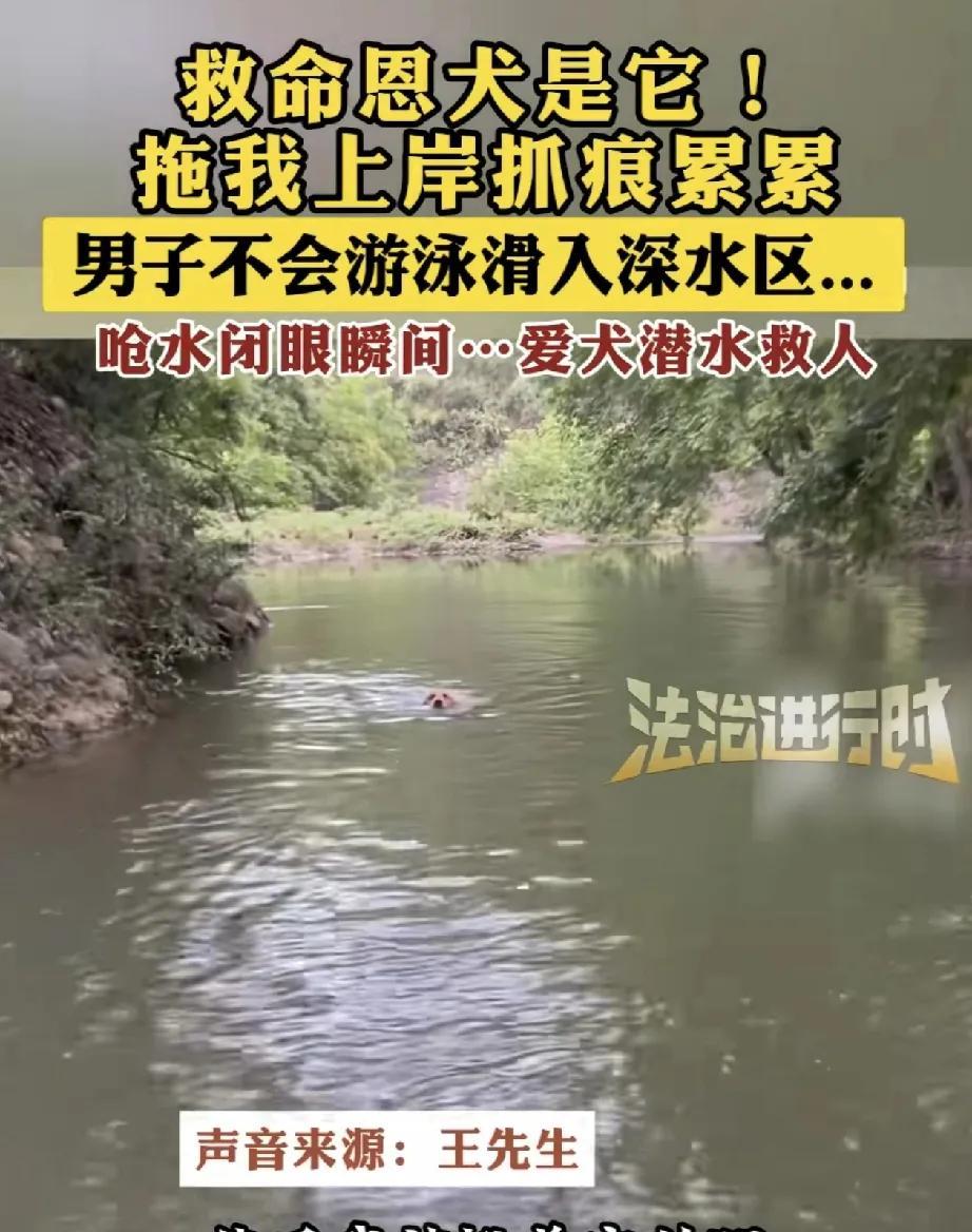 太有灵性了!湖北,一男子在网上分享,自己在水边游玩时不慎踩空滑入深水区,不会游泳的男子拼命挣扎想自救,但却越沉越深。而就在这危急时刻,他养的金毛犬发现后立刻跳水救主,最终奋力将主人拖上了岸边。 据男子描述,当时他在深水区边上玩耍,结果踩着一块石头后不慎滑倒,然后就直接掉到了水里。 不会游泳的男子掉水后,就在水里想挣扎自救,但挣扎一番后却让他越沉越深,最终力气耗尽的男子,开始头脑发晕,整个人都往水下沉去。 当时的男子也以为自己可能上不去了,结果他在水里一睁眼,竟看到自家狗子出现在了他的面前。然后狗子便揪着男子的腿,用尽全身力气的将男子拖回了岸上。 被救上岸的男子也是感动不已,虽然狗子在拖他上去时,抓得他胸部全是抓痕,但倘若不是狗子的奋力营救,恐怕男子命都没了。为此男子特意为狗子准备了奖励大餐。 后男子将此事发到网上,一是宣扬狗子对主人的忠诚守护。二是提醒那些不会游泳的朋友,千万不要去深水的地方玩。 对此有网友就表示:金毛犬绝对可以,天生的游泳健将,救人一把好手!以前养过一只,在河里游泳时,正常玩耍的它自己游自己的。后我故意潜水胡乱划水,它以为我溺水了,然后就拼命的游过了,叼着我的手腕,就往岸上拉。 还有网友表示:记得我小的时候,家里养了只狼狗,一天我在门外玩,一个陌生人抱起我就跑,是我家狼狗追上去咬着那个人不放,直到邻居发现后,我才得救了。所以不夸张的说,我的人生是狗救的,而狗子忠主护主是绝对的。 不得不说,这狗子太有灵性了,更是没白养!可以想象当主人溺水时,这狗得用多大的力气把主人拖上岸啊,可见狗子为了主人的安危,真是拼尽全力不顾一切! 正如网友所说,狗子的救主行为太让人感动了!男子的第二次生命都是狗子给的,以后可要好好珍惜和善待这救命恩狗,哪怕顿顿一个鸡腿也没毛病! 素材来源:法治进行时