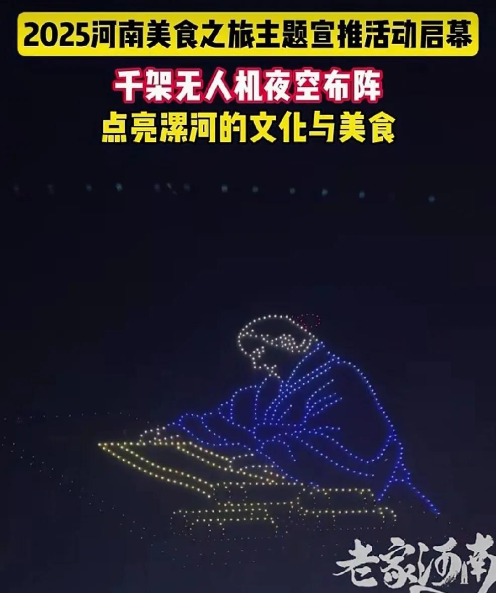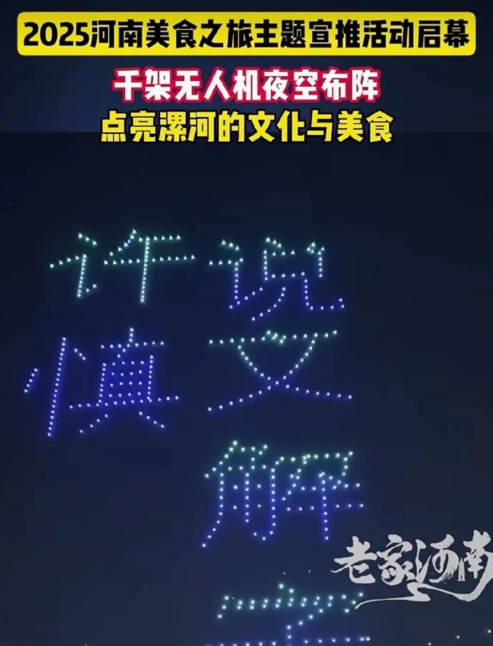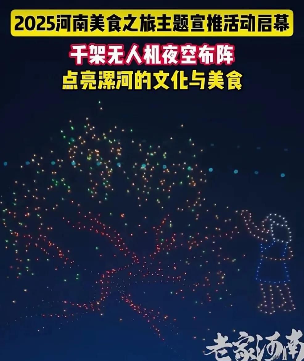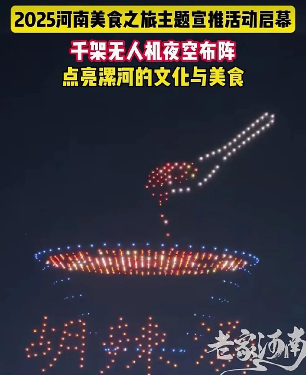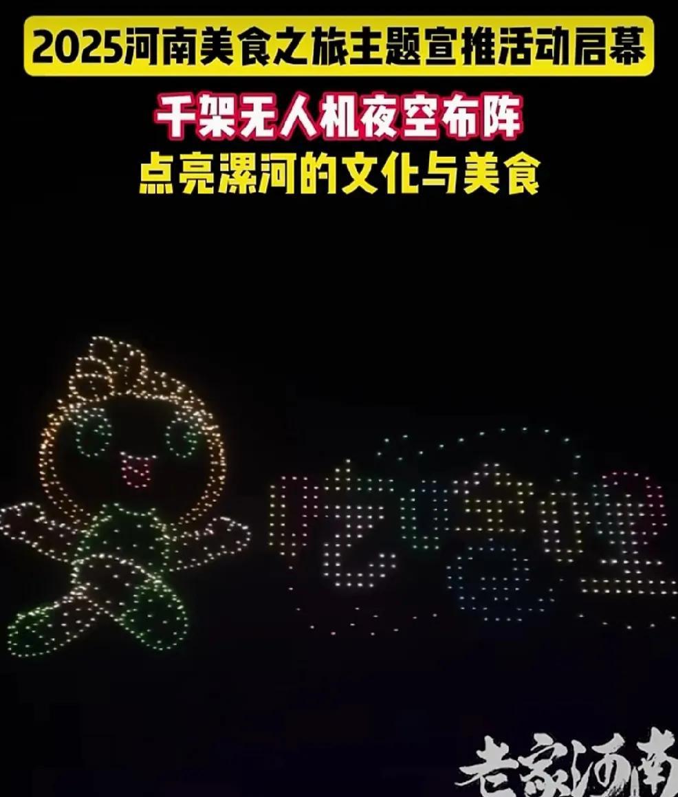 2025河南美食之旅主题宣推活动启幕,千架无人机夜空布阵,点亮漯河的文化与美食。