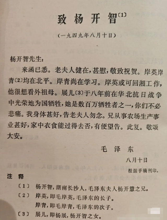毛主席于1949年8月10日回复杨开智的一封家书,内容不多,但内涵丰富。幸运的读者若能认真拜读,定将受益匪浅。