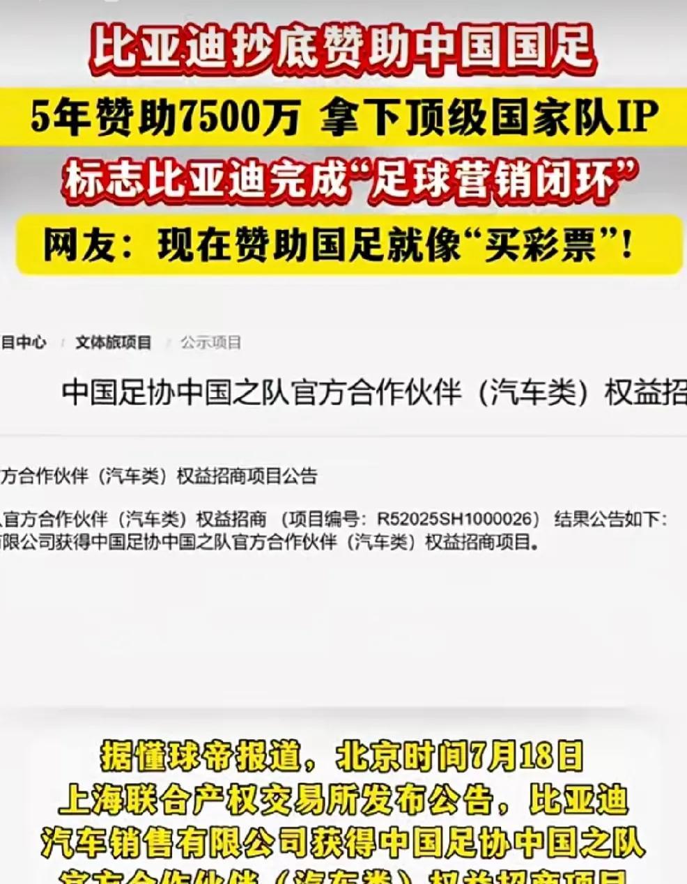 在全国球迷决心抵制男足赞助商的节骨眼上 比亚迪这是开始作死的节奏