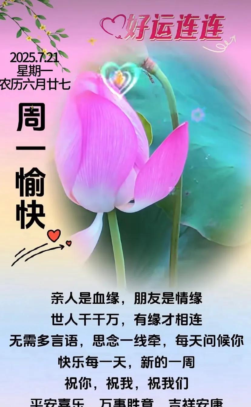 2025、7.21星期一 农历六月二十七 天气炎热、注意防暑、照顾好自己 永远平安健康!