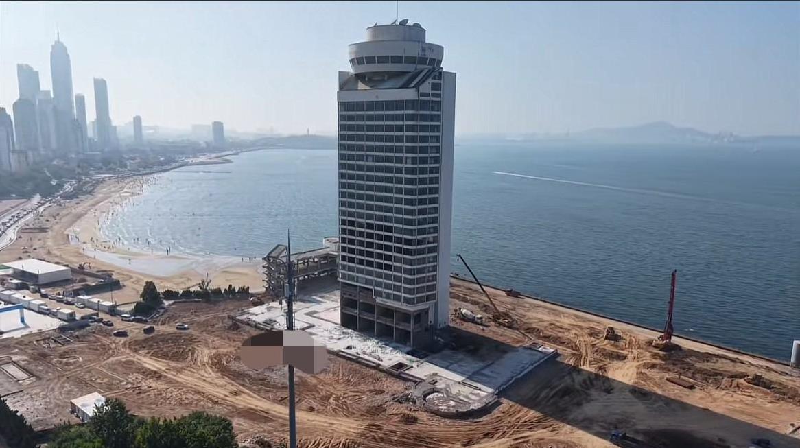 烟台第一海水浴场附近最核心的区域,滨海假日酒店的改造如火如荼进行中,地面收拾的挺
