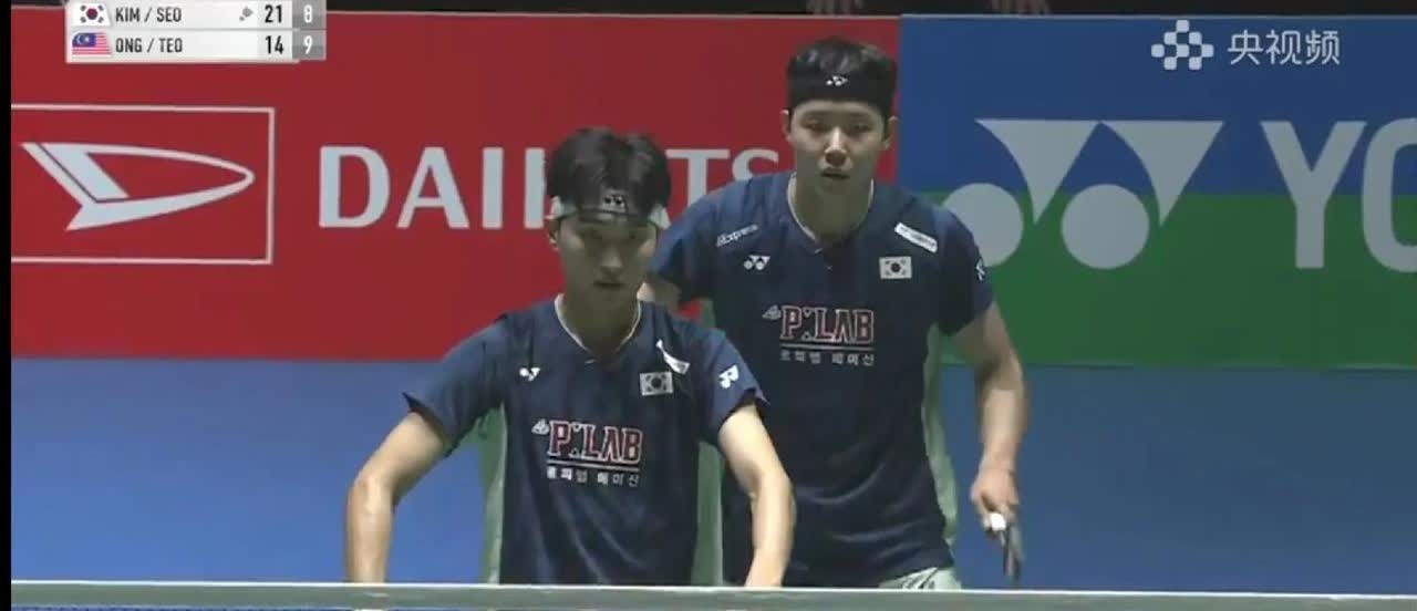 日本羽毛球公开赛男双半决赛,打到第二局的前半段,大家还以为要打决胜局,结果韩国欧