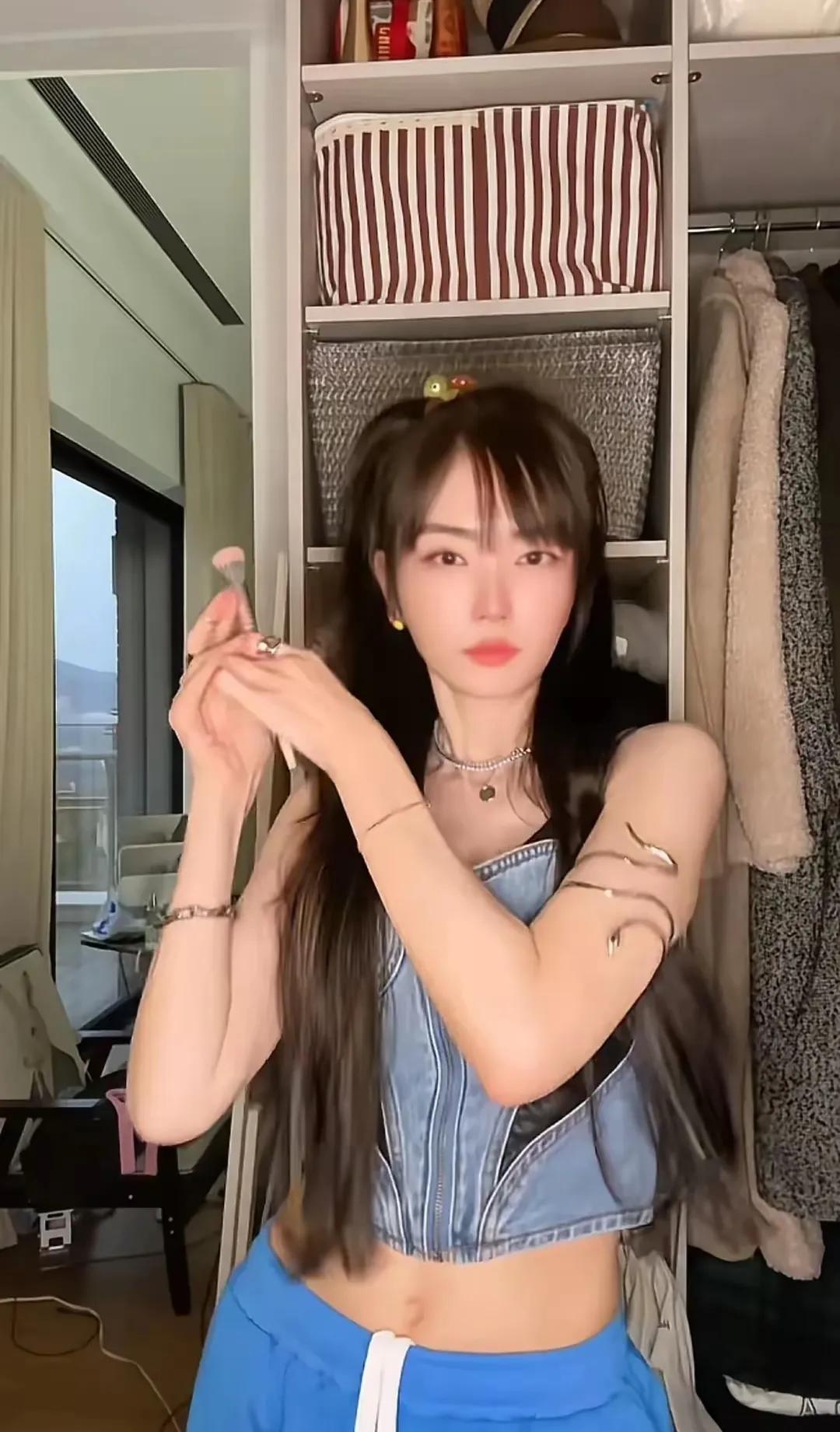 50岁谢金燕穿露脐背心跳手势舞,尽显小蛮腰,冻龄女神嫩得像30岁