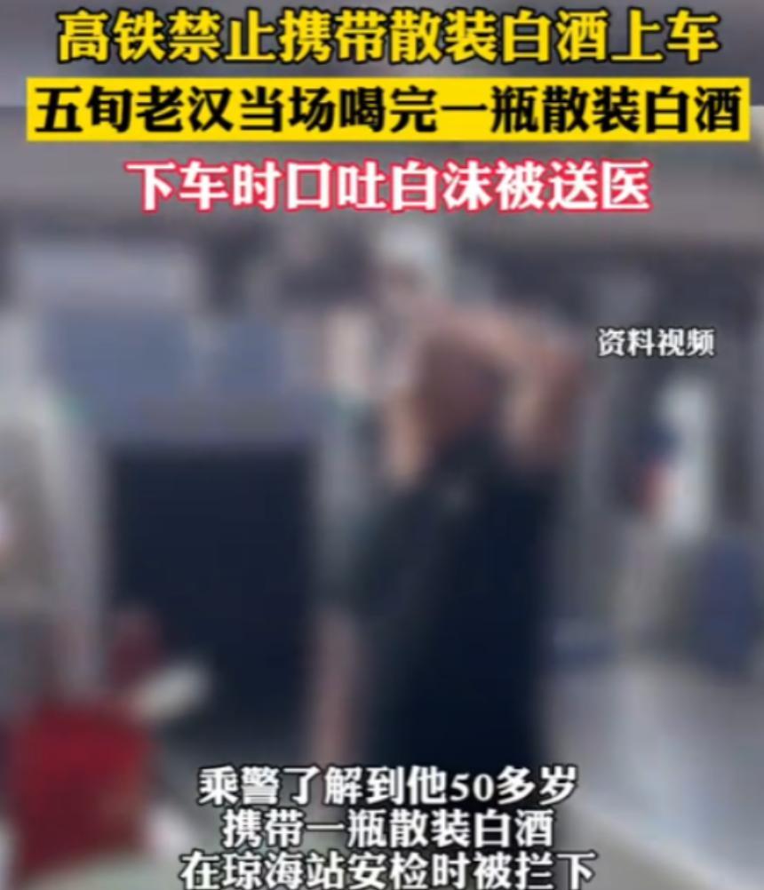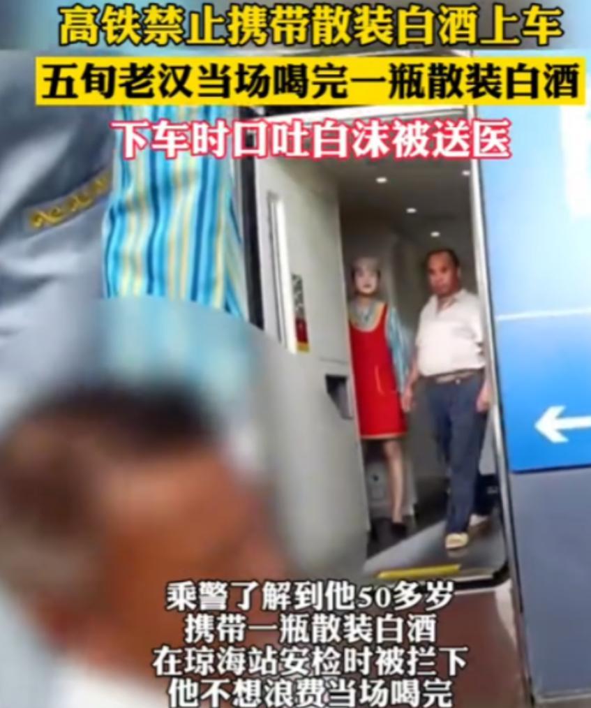 “这下长记性了!”7月17日海南,一名50多岁大爷坐高铁,结果,却被拦了下来!原来,大爷带了一瓶散装白酒,为了不浪费,大爷决定当场喝完,可到站之后,大爷直接口吐白沫,被紧急送医,网友:为了点酒,透支生命! “生命重要还是酒重要,如果不是救助及时现在命可能都没了!”医生生气的对大爷说道,这句话让我们不得不将目光聚焦到7月17日海南发生的这起令人揪心的事件上。 7月17日,海南的天气依旧炎热,在高铁站内旅客们拖着行李,匆匆赶往自己的目的地,就在这熙熙攘攘的人群中,一位50多岁的大爷显得格外引人注目,他穿着朴素,脸上带着些许焦急,手里紧紧地握着一个塑料袋,里面装着一瓶散装白酒,原来这位大爷是乘坐高铁出行的,而这瓶散装白酒是他从家里带来的。 大爷是个节俭的人,他觉得这瓶酒没喝完,扔了太浪费,可他又知道高铁上是不允许携带散装白酒的,一旦被查到这酒就会被没收,为了能带着这瓶酒顺利上高铁,大爷想出了一个自认为“聪明”的办法——把酒喝完。 于是大爷一口气将这个酒给喝了下去,然而大爷没有意识到,他喝的这瓶散装白酒质量未知,当高铁到达终点站时大爷已经喝得醉醺醺的了,他摇摇晃晃地站起身,准备下车,可就在他走出车厢的那一刻,他的身体突然晃动了一下,然后直接倒在了地上。 周围的乘客们都被这突如其来的情况吓了一跳,纷纷围了上来,只见大爷口吐白沫,脸色苍白,呼吸也十分微弱,有人赶紧拨打了急救电话,医护人员迅速赶到现场,对大爷进行了紧急救治。 医护人员将大爷抬上担架,快速送往附近的医院,在去医院的路上,大爷的情况依然十分危急,医生们一边进行着紧急处理,一边祈祷着大爷能够挺过这一关,到了医院后,医生们立刻对大爷进行了全面的检查。 经过检查,医生们发现大爷体内的酒精浓度已经严重超标,医生们立即展开了全力救治,采取了洗胃、输液等一系列措施,在医院的病床上,大爷依然昏迷不醒,他的家人得知消息后,匆匆赶到医院,看着躺在病床上的大爷,家人们都泪流满面,他们责怪自己平时没有多关心大爷的饮酒习惯,也责怪大爷为了这么一瓶酒,差点把自己的命都搭进去。 这件事情引起了网友们的广泛关注和讨论,有网友表示:“为了点酒,透支生命,真是太不值得了!大爷这次是真的长记性了,希望他以后能好好珍惜自己的身体。” 还有网友说:“这真是一个惨痛的教训,我们都要引以为戒,生命只有一次,我们不能因为一时的贪念而拿自己的生命开玩笑。” 我们每个人都有自己的习惯和爱好,但无论怎样,都不能以牺牲生命为代价,生命是宝贵的,我们应该珍惜每一天,健康地生活,我们也要时刻提醒自己,不要因为一时的冲动或者贪念,做出让自己后悔的事情。 对此你怎么看?欢迎大家在评论区留言讨论。 信息来源:《五旬老汉当场喝完一瓶禁带上高铁散装白酒下车时口吐白沫被送医》半岛晨报