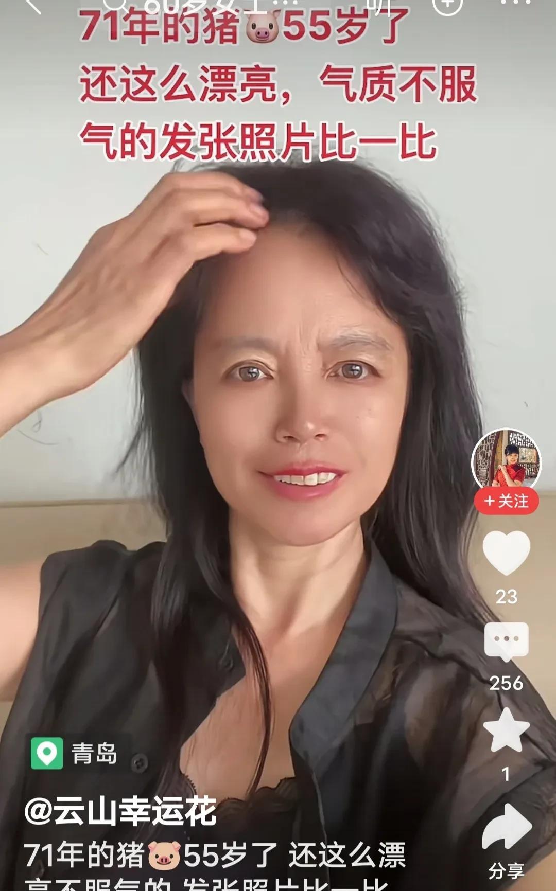 美女发视频说,“71年的猪,55岁了,还这么漂亮,不服气的发张照片比一比。”在自