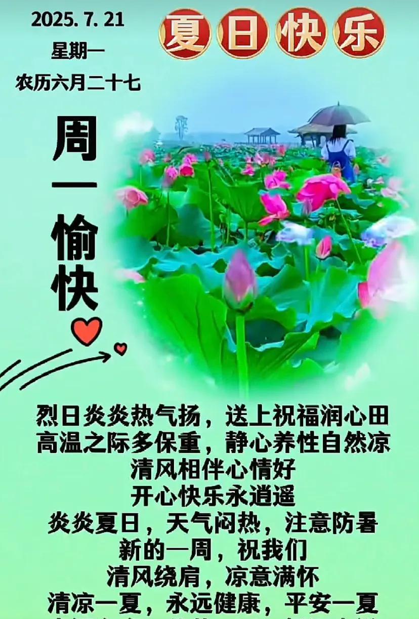 2025、7.21星期一农历六月二十七 清凉一夏、平安一夏、幸福安康、好远吉祥