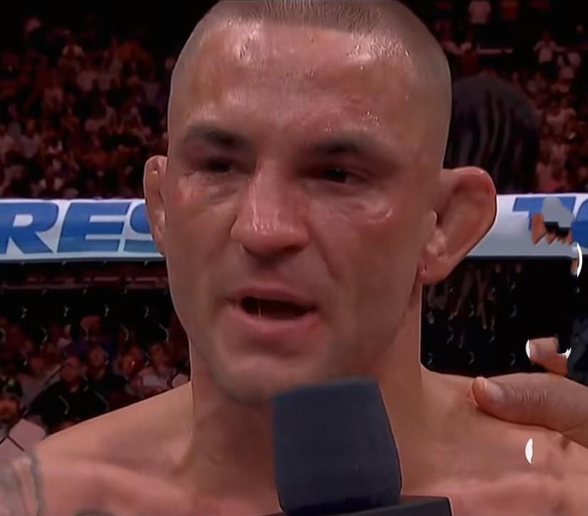 “钻石”点数负于霍洛威,当场宣布退役! 这场比赛是普瓦里尔的退役战,也是两人之间的第三次交锋,两人前两场比赛各有胜负,这次算是做个了断! 第一回合,霍洛威两次击倒钻石,拿下这一局,第二回合两个人互有重击,但还是霍洛威占优,掌控场上局面时间更长,也看出钻石的身体硬度和快速恢复的能力确实厉害。第三回合,钻石逐渐找到了感觉,慢慢掌握了比赛节奏,应该是拿到这一局,第四、第五回合,又被霍洛威重新掌控,整场比赛,霍洛威的步伐移动比钻石更快,钻石也许是真的老了,已经跟不上霍洛威的节奏了,找不到合适的输出点了,而且钻石的打击密度也比霍洛威差一些,最终点数告负! 比赛结束,钻石现场看到大屏幕上播放的自己职业生涯的片花,泪洒八角笼,当场摘下拳套宣布退役。自2011 年进入UFC赛事,十几年来,给我们带来无数经典的比赛,我们向他致敬,祝他退役后开启新的生活!(网络视频截图,侵权即删!)