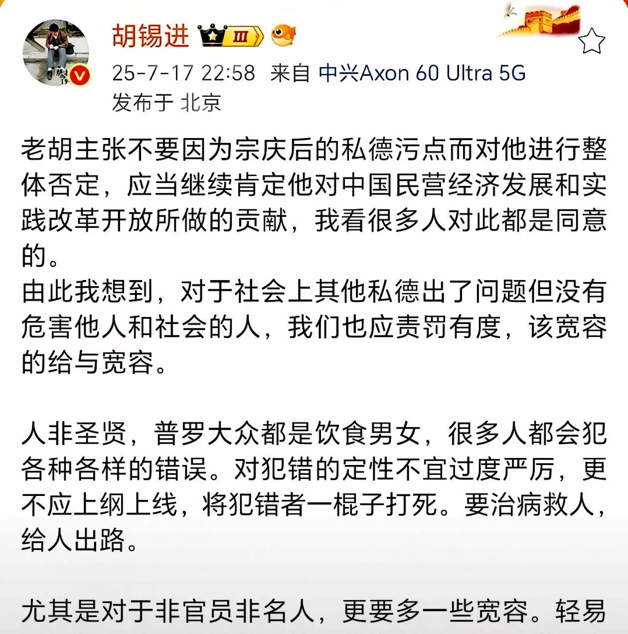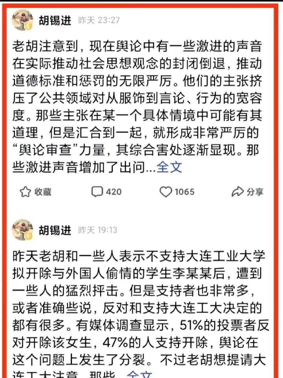 老胡们到底怕什么呢?昆仑指其在体制内外游走,涉嫌操纵话语权 近来一些冲上热搜的话题,让人看一个人可以这样,也可以那样。 比如,李某莳及宗庆后家族“宫斗”。 他既可以批评也可以表扬,关键是与芸芸众生的观点背道而驰。 什么原因呢? 我在其7月14日的一段文字里及昆仑策的一篇文章中似乎看到答案:道德标准太高了,是思想观念的倒退…… 他这是什么意思? 难道说他与西方媒体同频共振,才是进步,才是道德标准的准则? #晒图笔记大赛# #社会百态#