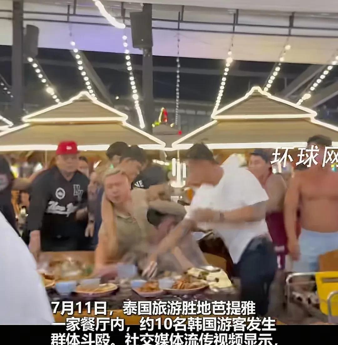 7月11日,泰国芭堤雅一家餐厅内发生的韩国游客群体斗殴时间让人笑死,纹身最多的大