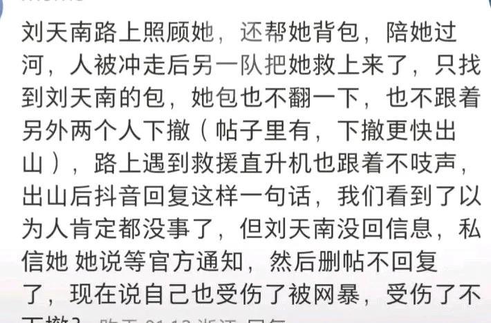 吃喝不愁有胆的人才会去挑战高海拔近200公里的徒步路线,心存侥幸擅闯封闭路段出事也只能后果自负。 在7月6日狼塔失踪的资深驴友刘天南的背包和鞋子,疑似在附近被发现。 鞋子是湿的,包是干的,样式和颜色与他本人照片里的配置极为接近。 目前尚没有找到他人的消息。 刘天南和小舟是临时搭子,两人租车进入新疆呼图壁县南缘的峡谷入口,计划用10到12天完成狼塔C+V线。 这条路没有手机信号,也无补给站,是禁行路线,在圈内被称为“致命狼塔”。 出事前两天两人遇到另两组穿越者,组成了11人的临时团队,这本来是好事,人多力量大啊!可事实并非如此。 6日他们横渡一条河,刘天南与小舟双双落水,小舟幸运地被救起,刘天南就此失踪。 在搜索两小时无果后,说是担心发生泥石流,其他人员没有继续寻找。剩下10人,2人回撤8人继续前行。 小舟他们8人在9号走完C线后被拦截,发文报平安,没提有人失联。 旅行搭子的态度引起刘天南家人不满,但估计也只能不满了,毕竟都是成年人,得为自己行为负责。 冲走刘天南的河叫台普西克马河,个别地段落差可达10余米。狼塔CV,在资深驴友眼里就是顶级户外殿堂,骨灰级玩家的朝圣地。 很多人就是为了追求极致的自然景观,刷新自己的挑战难度,去人迹罕至的荒野“冲关”。 冲过去,就研究下一场。 冲不过去,也就冲不过去了……