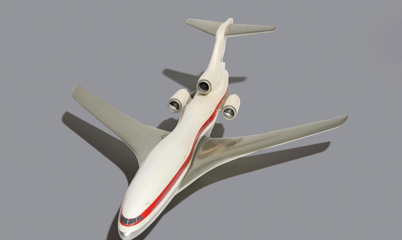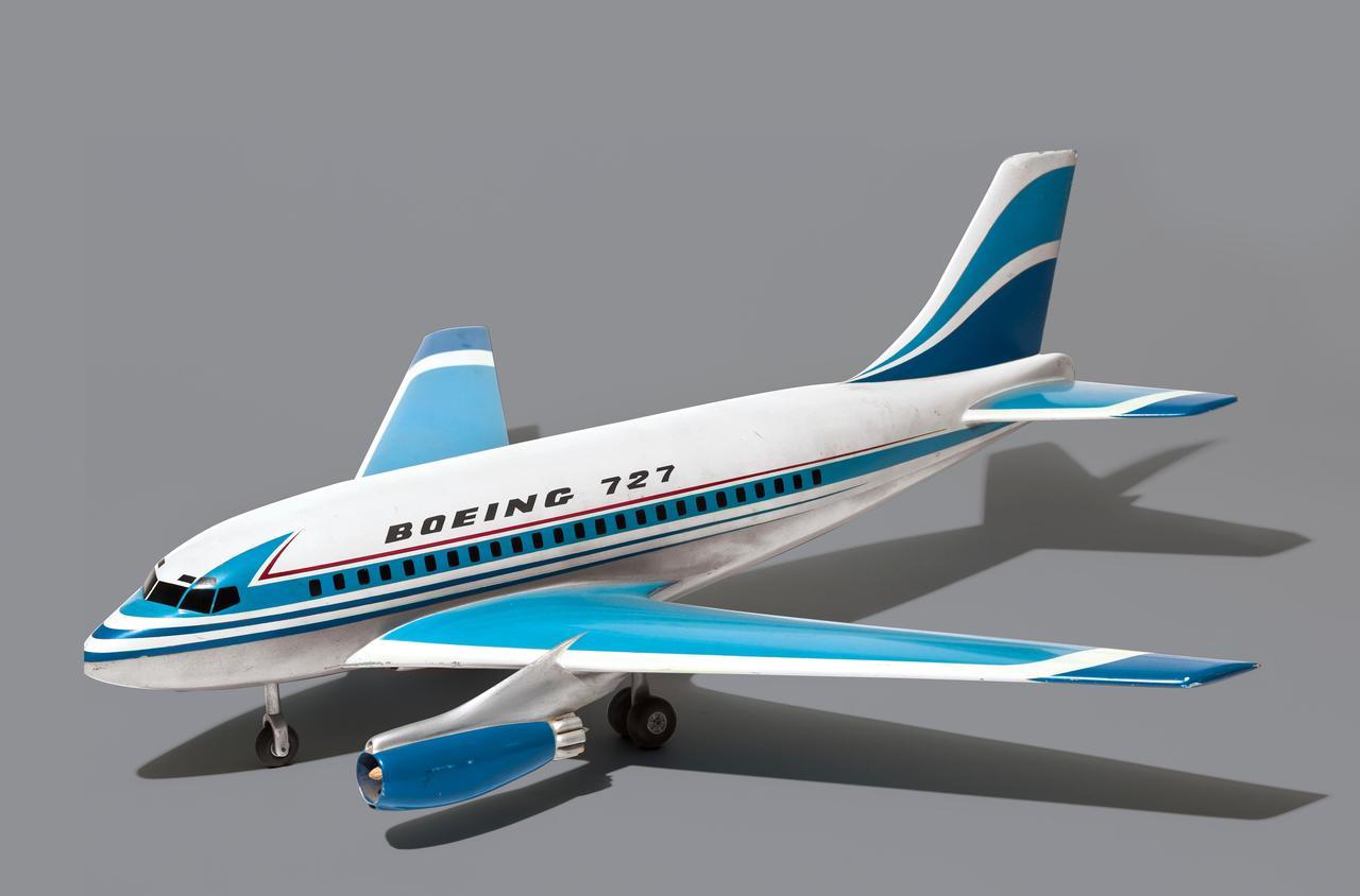 波音814-1010 波音开始参与美国空军的高超声速项目是在1957年。这一年波音提交了814-1010方案,该方案采用两台洛克迪恩E-1液体燃料火箭发动机和两台X-279涡喷发动机来推动第一级——一具40米长的可重复使用运载器。在运载器上面,以背负方式安装第二级,其顶部是一台箭形的DSII,其中容纳一名飞行员和一枚核武器。这一概念后来演化成X-20“动力翱翔”空天飞机方案。 波音733-606-12方案 1979年,波音公司提出的733-606-12型方案,这是一种马赫数2.5的超声速飞机。波音公司的模型制作室特别制作了采用美国空军和NASA涂装的1/100变型机模型。该方案应用了面积律、箭头形机翼和外段小翼,波音公司打算把它用于超声速飞行研究,也能作为军用截击机或侦察机,如果作为民用平台,它就是一架载客6人的公务机。 被浪费的蜂腰 1972年波音开始考虑开发用以替代波音707和道格拉斯DC-8的新型客机。工程师们拿出了767-611型方案,采用超临界翼型和面积律机身,双通道宽体设计可以容纳更多乘客,巡航速度可达马赫数0.98。然而到了1974年,快速飙升的燃油成本让航空公司更多关注运营效率而不是飞行速度,这款尾部安装3台发动机的方案也只能被废弃。不过话说回来,真要制造这样的飞机,光是那个变截面机身就会让负责制造工艺的工程师很受伤。 727早期概念 波音727的早期概念是这样子的,两台喷气发动机吊装在机翼下方。最后的生产型727并没有采用这一方案,改为使用3台发动机,其中两台装在机尾两侧,另一台位于尾部上方。波音727的设计用途是在中短途航线上使用,能够在较短的跑道上起降。投入使用后,波音727很快成为商用飞机标志性产品,堪称当时最畅销的商用飞机之一。 波音818方案 1960年,美国国防部打算开发一种新型战斗机,取代空军的F-105和海军的F-4。新战斗机的技术要求很怪异,要有战斗机的速度,轰炸机的载荷,还要有运输机的航程。波音提交了可变后掠翼的818型方案,使用两台TF-30涡扇发动机,进气口设在背部后方,可调反推机构能够在飞行中变换推力水平。不过这次竞标波音落败,通用动力方案胜出,发展出F-111。 波音737概念 1963年波音727首飞,但波音很快发现老对手道格拉斯DC-9在市场表现上压自己一头,于是决定开发一种新型客机。为了节省时间,工程师们大量沿用波音707和727的设计,这件大比例模型制作于1965年,被称为240A方案。两年之后首飞的波音737与这一方案相去甚远——发动机被安装在机翼下方,水平尾翼安装在机身后部。波音737被市场证明相当成功,销售数量总计超过10 000架,至今仍在生产。