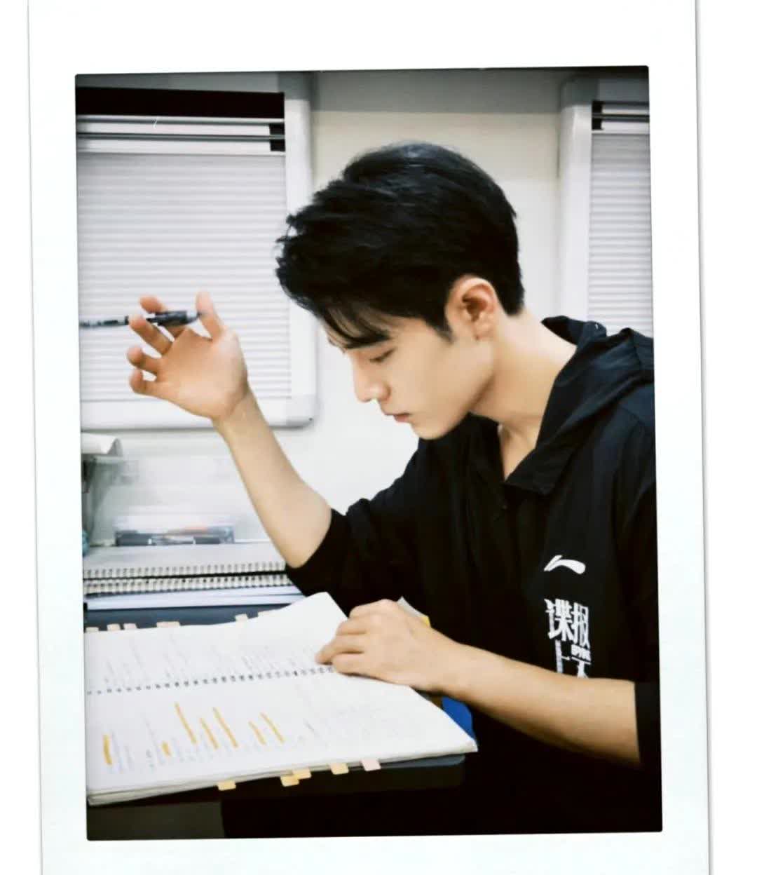摘春联后肖战首发微博,小小的水印好可爱哦任少白,拿起剧本分析台词的样子真的是高中生啊