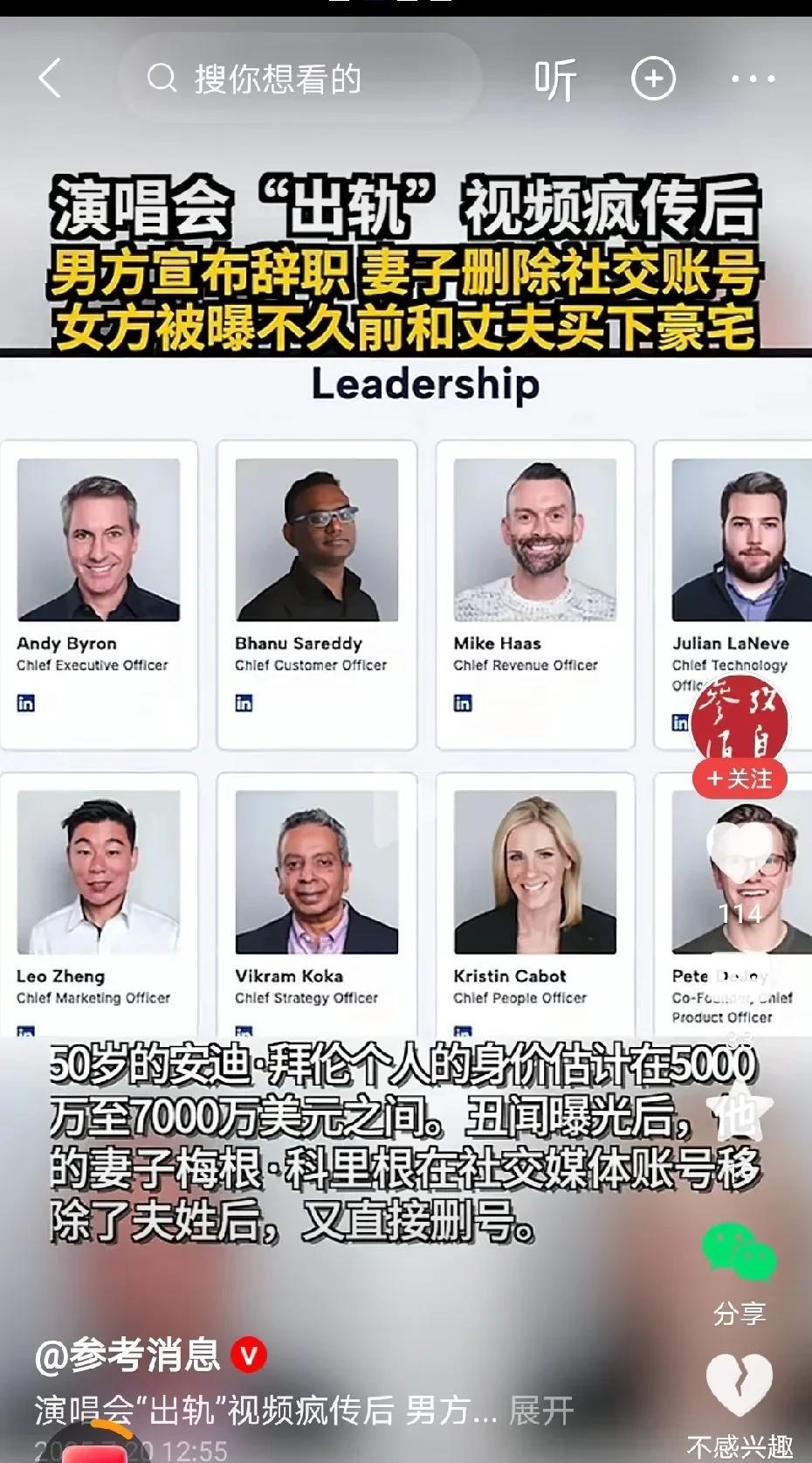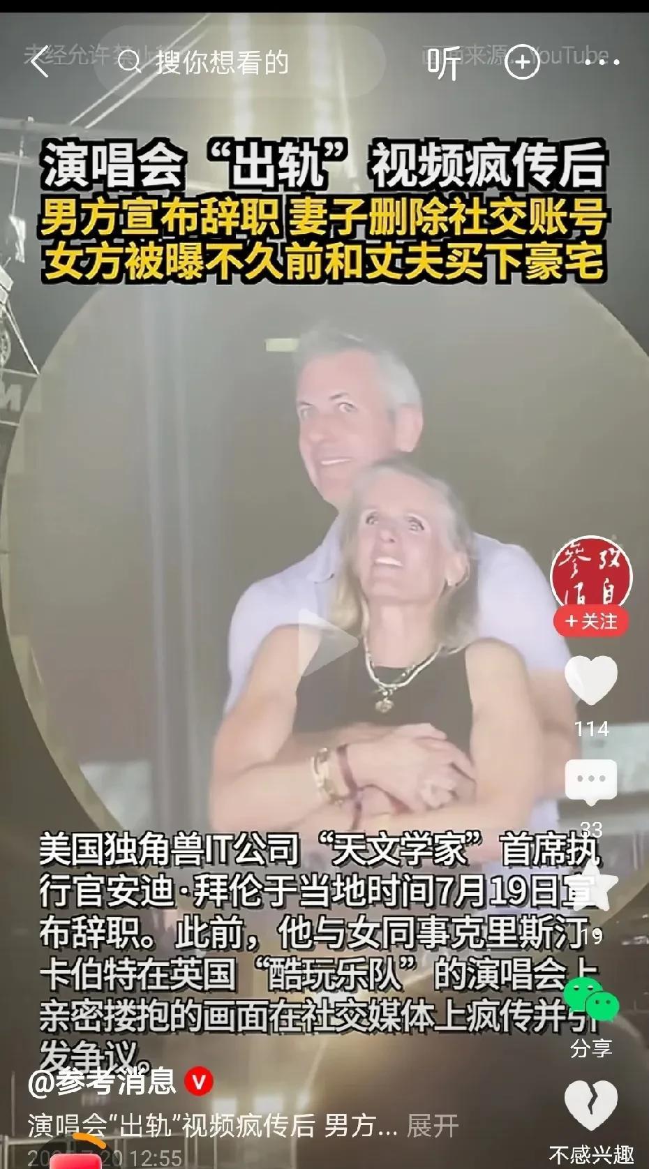 看到美国独角兽IT企业的“天文学家”、首席执行官安迪.拜伦在演唱会上亲密搂抱一名