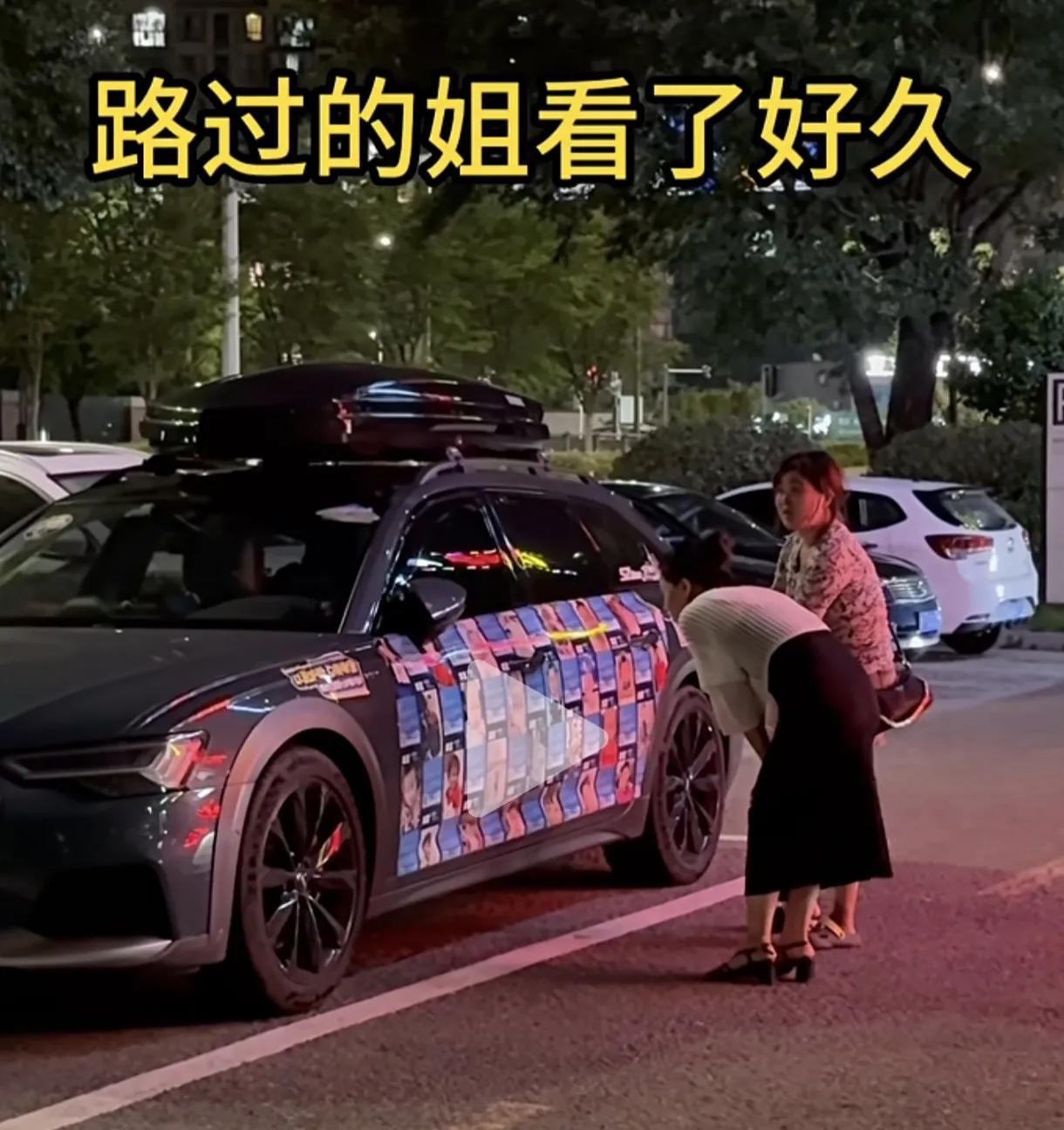 这应该是最美车衣!没有之一了!视频中一辆奥迪小车停在路边停车位上。两位路过的美女