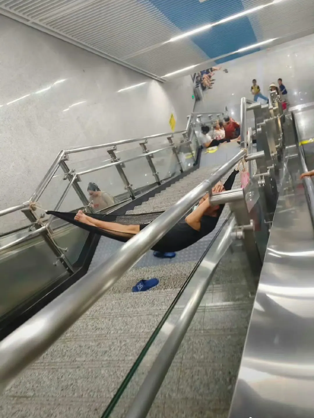不是所有地铁人流量都大,不碍事就行,省点电吧,但在楼梯挂吊床太过分了。