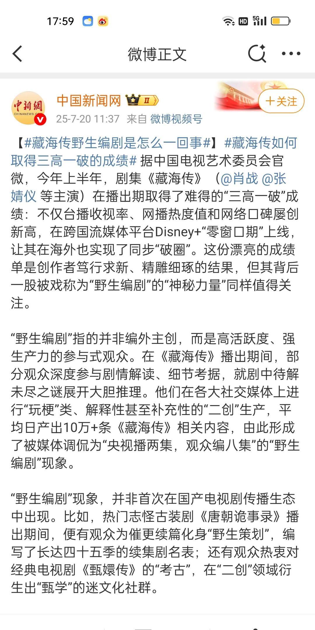 藏海传野生编剧是怎么一回事,这是中国新闻网发的一篇文章的词条,快快快,野生编剧快