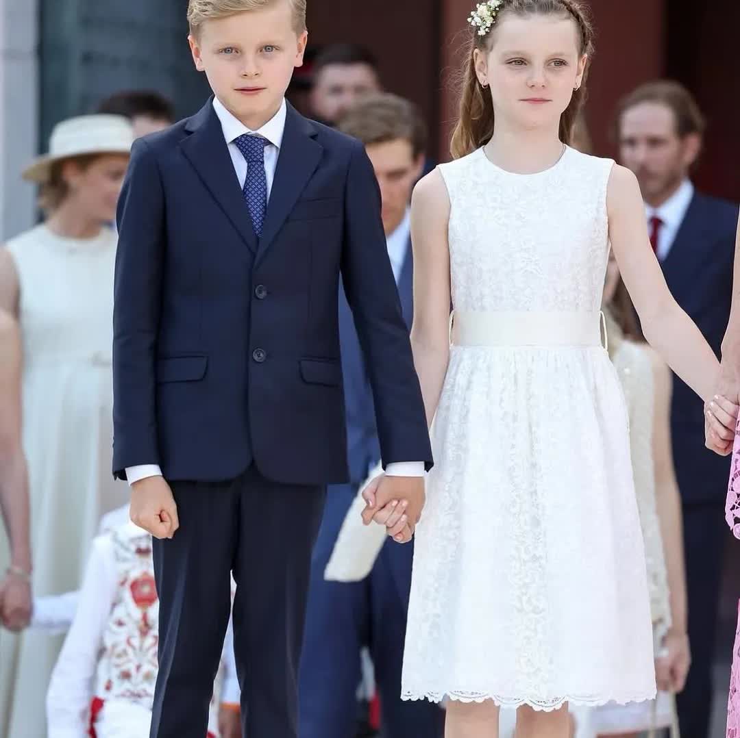 夏琳王妃和她的美貌闺女 昨天摩纳哥王室一家现身,庆祝村长登基20周年。话说都已经过去这么久了,女儿和她爹一模一样。