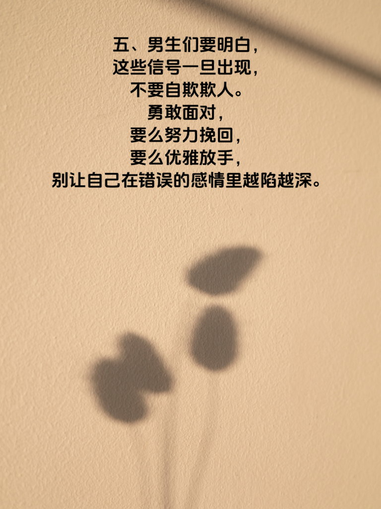 一、在男女情感的世界里,有时候女生心不在你,那些无声的信号比言语更能透露真实的心意。 二、她不再主动找你聊天,曾经的热情似火消失不见。不再关心你的日常,对你的话题也只是敷衍回应。这或许就是心已走远的信号。 三、约会时的心不在焉,眼神总是飘向别处,对你们的未来规划毫无兴趣,这些都是明显的暗示。 四、当她开始减少和你相处的时间,找各种借口推脱见面,那就说明她的心已经不在这段关系里。 五、男生们要明白,这些信号一旦出现,不要自欺欺人。勇敢面对,要么努力挽回,要么优雅放手,别让自己在错误的感情里越陷越深。