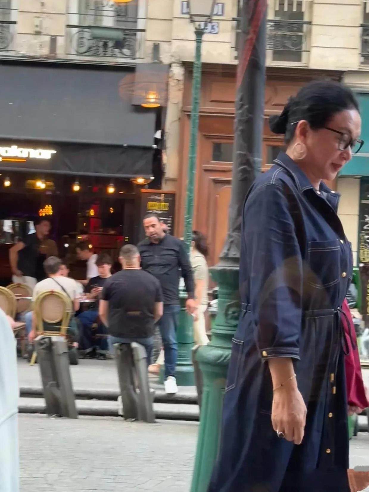 著名主持人、舞蹈家金星近日现身巴黎街头,一身深蓝色牛仔套装长裙,脚上穿着黑色高跟