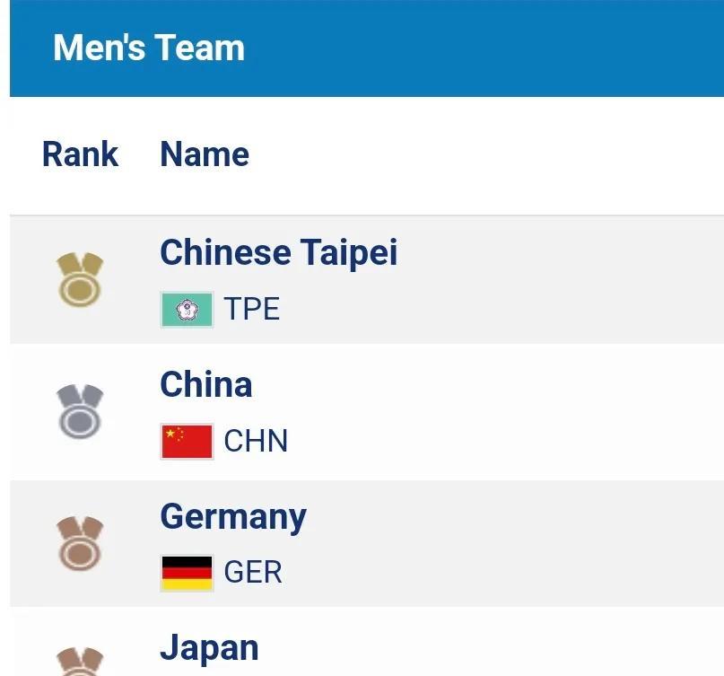 世界大学生运动会丨中国男乒丢冠! 第32届世界大学生运动会乒乓球男团决赛结束,中国男团以总比分2比3不敌中国台北队,屈居亚军,中国台北队获得男团冠军! 首盘,陈俊菘1:3不敌冯翊新; 第二盘,孙正出场,以3:1战胜高承睿,顽强将总比分扳平; 第三盘,曾蓓勋1:3不敌黄彦诚,中国男团再度落后; 第四盘,陈俊菘3:2高承睿,双方二度战平; 第五盘,孙正2:3不敌冯翊新!中国男团2比3告负! 整体实力上,中国台北队几名选手要高于中国队,尤其是高承睿和冯翊新世界排名都在前50名,也多次参加国际大小赛事!今天陈俊菘发挥的可以,首盘丢掉之后,第四盘赢了回来,三单曾蓓勋没能拿下这至关重要的一分,有点可惜! 男团最终结果: 冠军:中国台北; 亚军:中国 季军:德国、日本 中国男、女团都是亚军,再接再厉,打好接下来的单项比赛,加油!