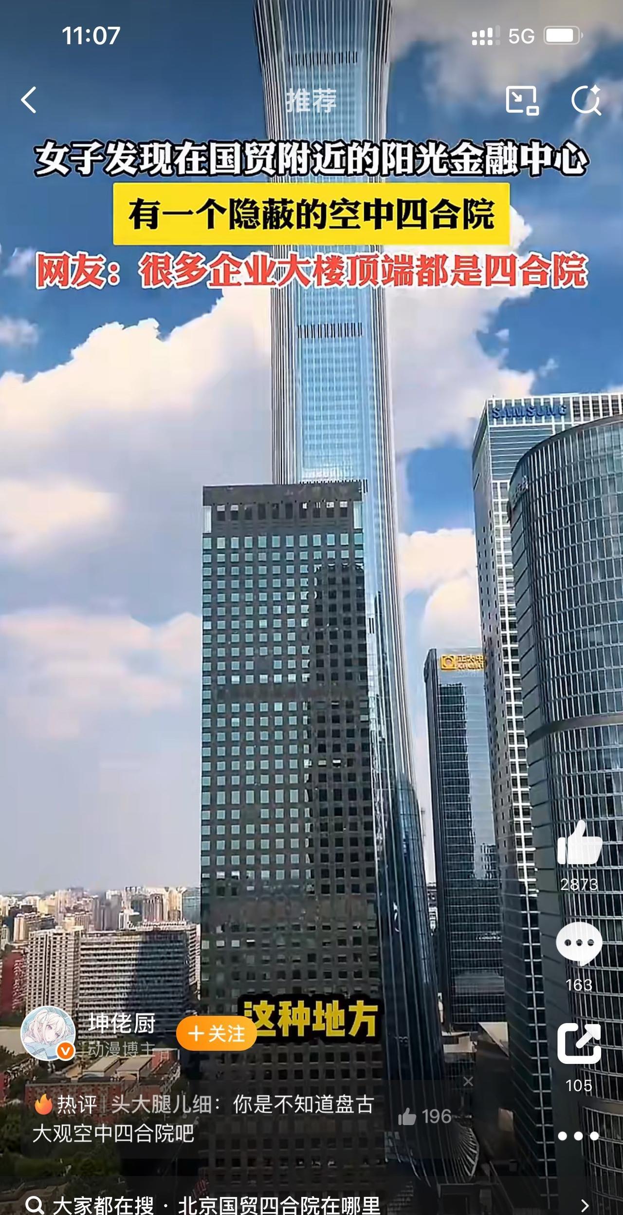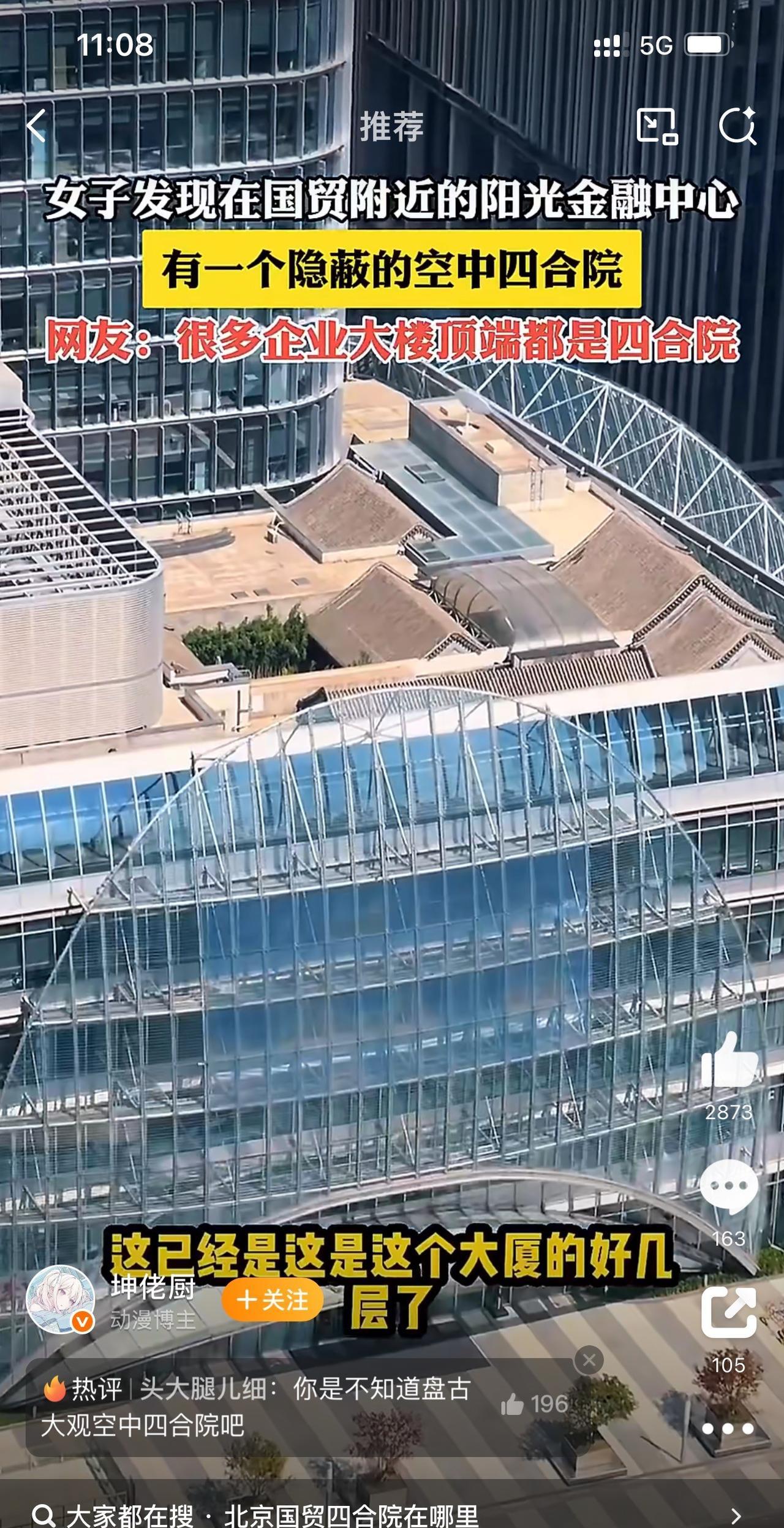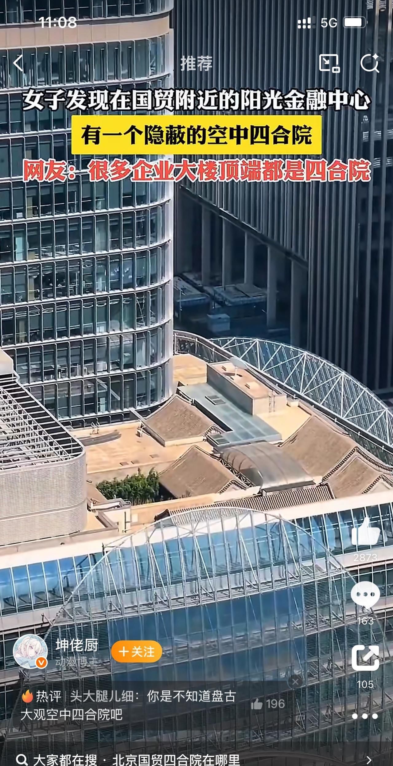 北京对四合院有执念[允悲] 国贸附近的阳光金融中心,有一个隐蔽的顶楼四合院#西四环四合院# #四合院# #商务四合院#