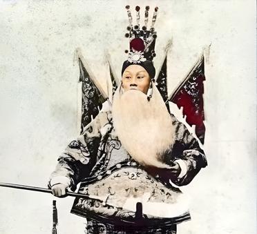 这件蟒袍是清廷专门为当时的京城名角谭鑫培所缝制的。当时,谭鑫培常被邀请到皇宫中为最喜欢京剧的慈禧太后表演。慈禧太后是有名的京剧迷。当初,慈禧太后从西安回到紫禁城的第一天就命令演戏。慈禧太后看戏困了眯会眼或者离开出去散步时,戏台上的戏并不会停而要一直演。这样,当慈禧太后睁开眼或从外面回来后能随时看戏。 慈禧太后特地选拔太监进行培养,并负责日常戏曲演出。这些太监的水平虽然比不上当时顶尖的戏曲演员,但水平还是相当高的。这些太监的表演水平自然难以满足慈禧太后的要求。因此,慈禧太后时常邀请外面的戏曲名家到皇宫中演出。谭鑫培是慈禧太后最喜欢邀请的演员。谭鑫培饰演刘备时就穿这件蟒袍。