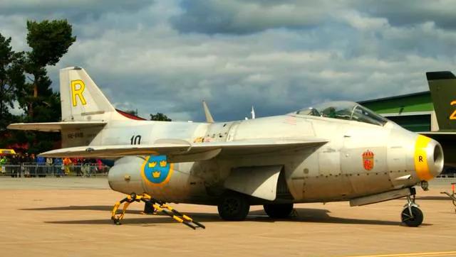 奇特的飞行圆桶——J29战斗机 J29战斗机因粗短的圆筒形机身得名“飞行圆桶”,这种奇特的设计源于其搭载的英国德·哈维兰“幽灵”离心式喷气发动机,瑞典仿制型号RM2。发动机直径达1.34米,为容纳进气道和机身内起落架,机身被迫加粗,形成标志性的桶状外形。飞行员调侃其地面像“丑小鸭”,升空后变“灵活的鸭子”,凸显意外优秀的机动性。 J29借鉴德国空气动力学数据,采用25°后掠翼设计,是瑞典首款后掠翼喷气战机。薄层流机翼减少阻力,但限制了内部油箱空间,航程仅1100公里。J29机长10.13米,翼展11米,空重4.8吨,最大起飞重量8.3吨。最大飞行速度1060公里/小时,实用升限15,500米。装备4门20毫米HS.404航炮,每门备弹180发)。翼下10个挂点,可挂载火箭弹、600kg凝固汽油弹、副油箱等武器。 J29以奇特外形掩盖了卓越性能,独立创新,脱离美苏体系,成就欧洲先驱喷气战机,成为瑞典航空自信的象征。