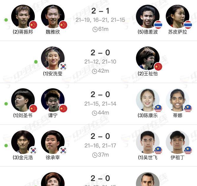国羽在此次日本公开赛最终以三冠一亚收官。除了石宇奇夺得男单冠军之外,蒋振邦/魏雅欣夺得混双冠军,谭宁/刘圣书夺得女双冠军,王祉怡夺得女单亚军。韩国队紧随其后夺得两项冠军,分别是安洗莹夺得女单冠军,金元昊/徐承宰夺得男双冠军。国羽在参加完日本公开赛后将继马不停蹄赶回中国常州,参加于7月22日开战的中国羽毛球公开赛(超级1000)。 本次比赛,国羽4项打进决赛,男双却过早出局。目前国羽只有梁王拿得出手,但状态和实力相比去年都大幅下滑。本来何济霆/任翔宇也能分担一些,但因为某些原因,被迫拆对。导致男双赛场国羽相当尴尬,达到无人可用的程度。 决赛赛果 石宇奇 21-17、21-15 拉尼尔 安洗莹 21-12、21-10王祉怡 金元昊/徐承宰 21-16 21-17 吴世飞/伊祖丁 刘圣书_谭宁 21-15、21-14 陈康乐_蒂娜 蒋振邦_魏雅欣 21-19、16-21、21-15 德差波_苏皮萨拉 冠亚军 男单:石宇奇、拉尼尔 女单:安洗莹、王祉怡 男双:金元浩/徐承宰、吴世飞/伊祖丁 女双:刘圣书/谭宁、陈康乐/蒂娜 混双:蒋振邦/魏雅欣、德差波/苏皮萨拉 PS:中国队3冠1亚,韩国队2冠,马来西亚队2亚,泰国队,法国队各1亚