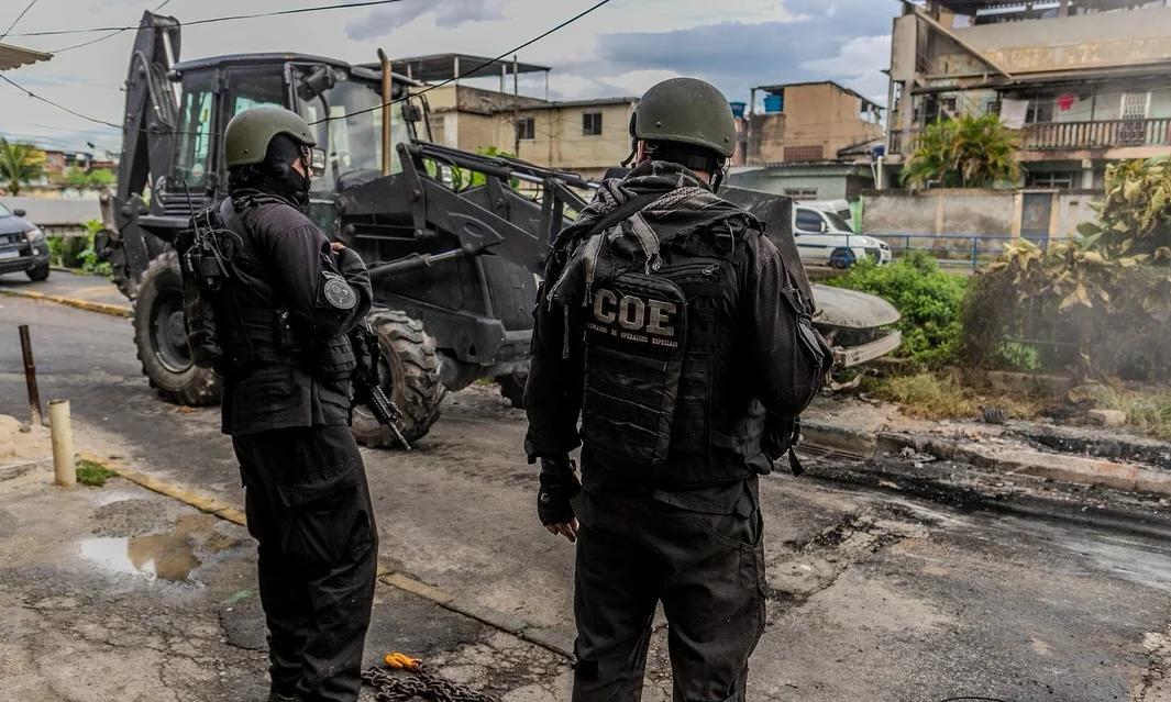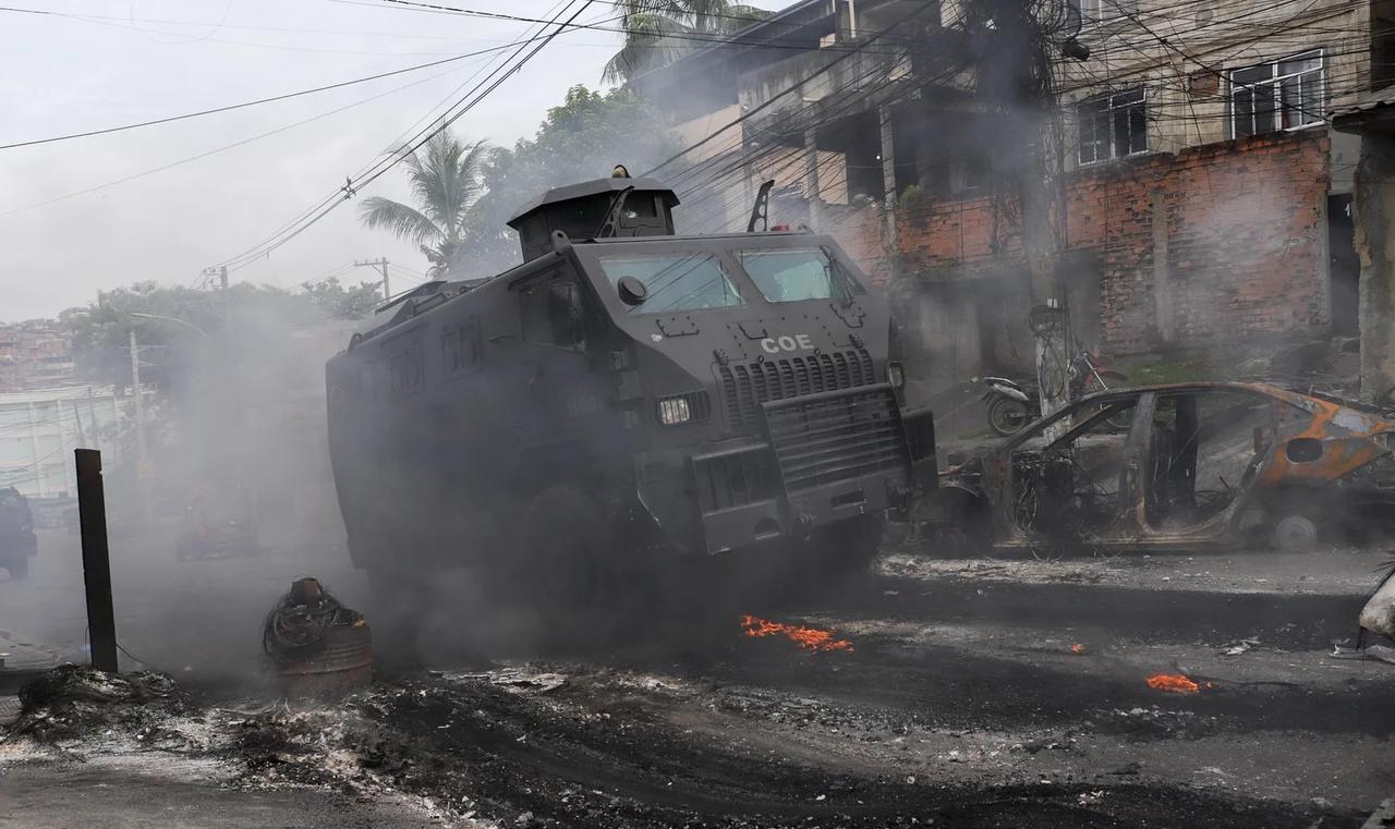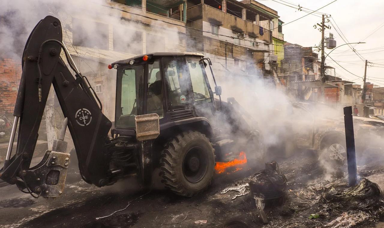 巴西里约热内卢州军事警察的特种作战司令部士兵拆除平民窟毒贩设置的路障