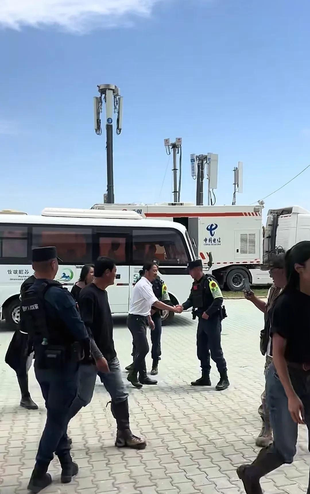 日前举行的天马文化节就跟吴京的主场一样。 看他走到门口就伸手跟执勤的警察握手,每个人握一遍后再合影。 警察想合影吗?我觉得想吧,本来好多人就喜欢吴京,要是再练武就对他更有滤镜。 但执勤就是工作,不能主动跟人握手,以及合影,但如果是群众们想合影就不同。