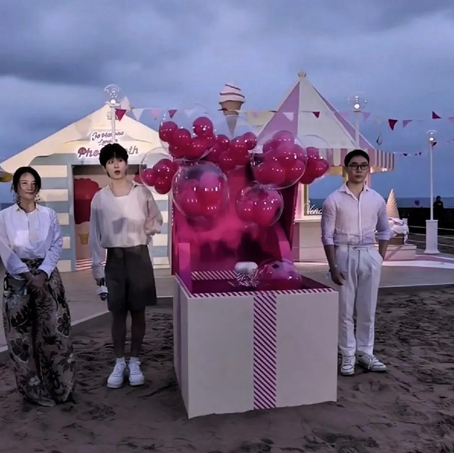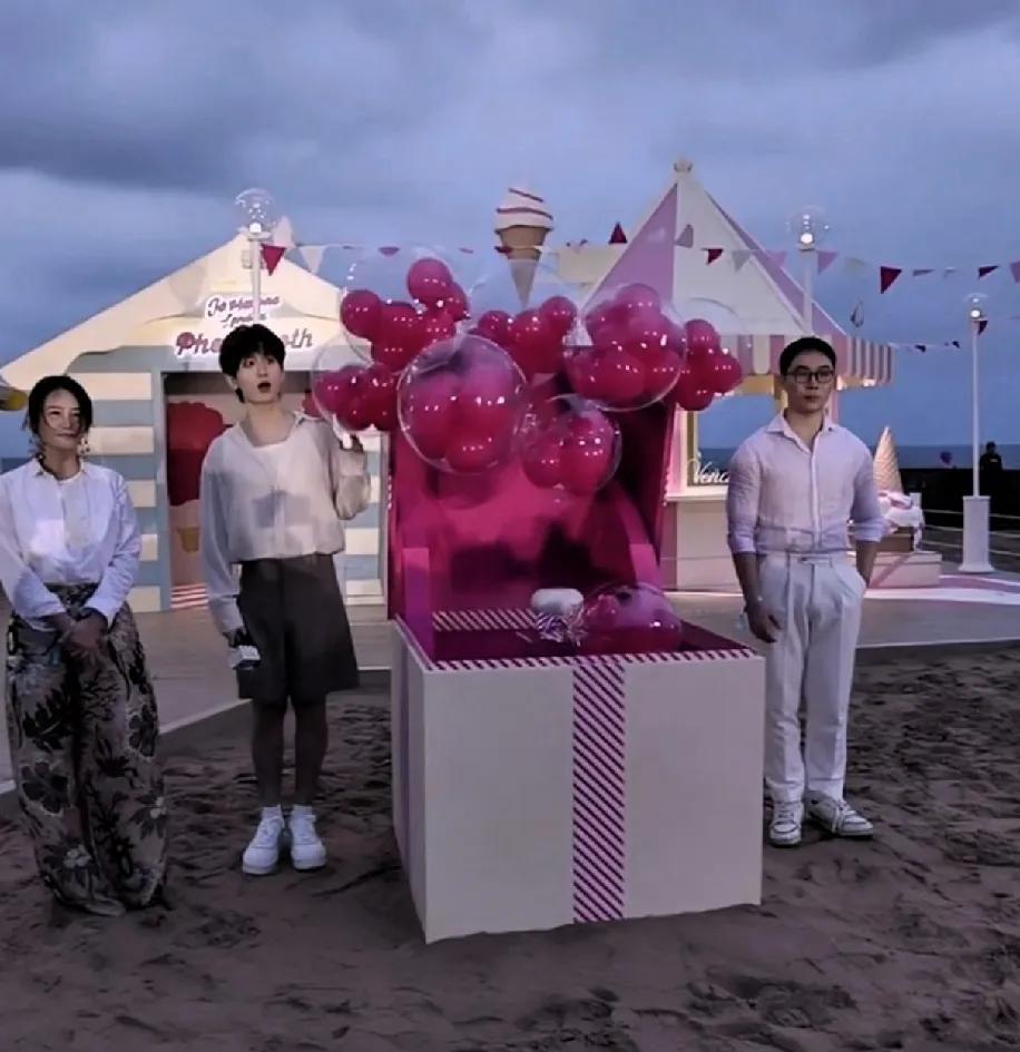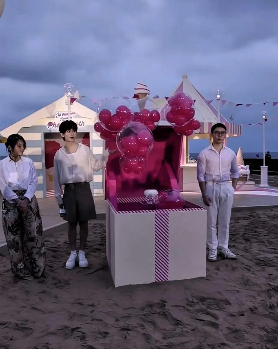 成毅祖玛珑活动被气球吓到了!快40了还这么装纯真有一套!现场气球随风飘动,飘向他