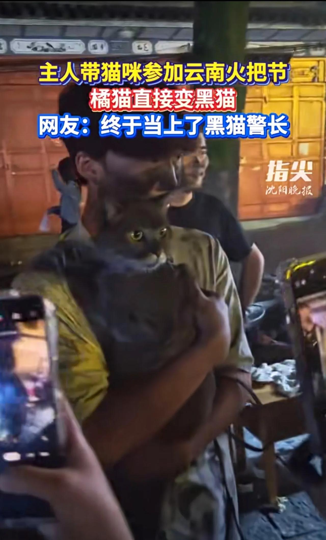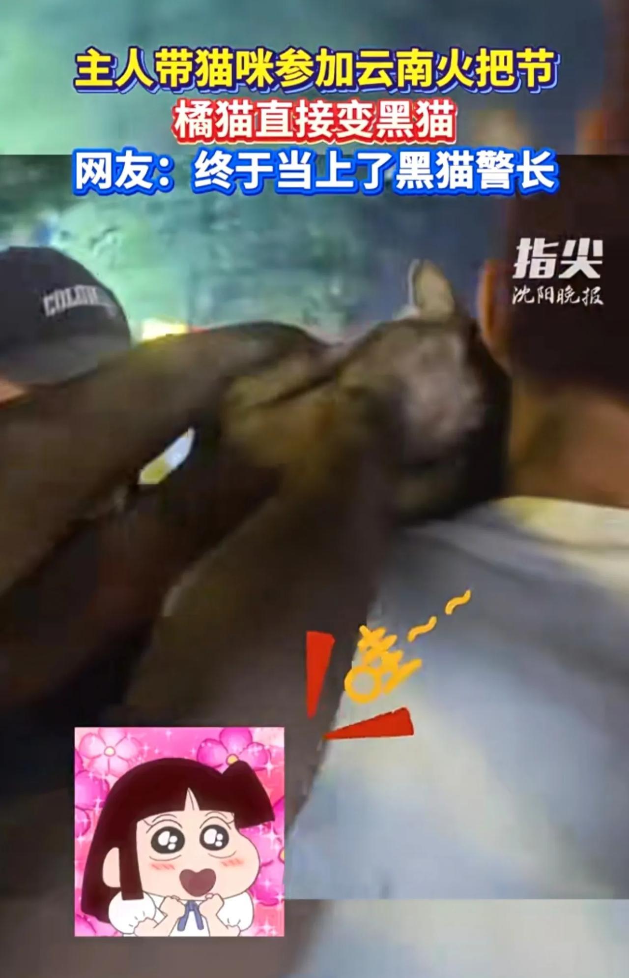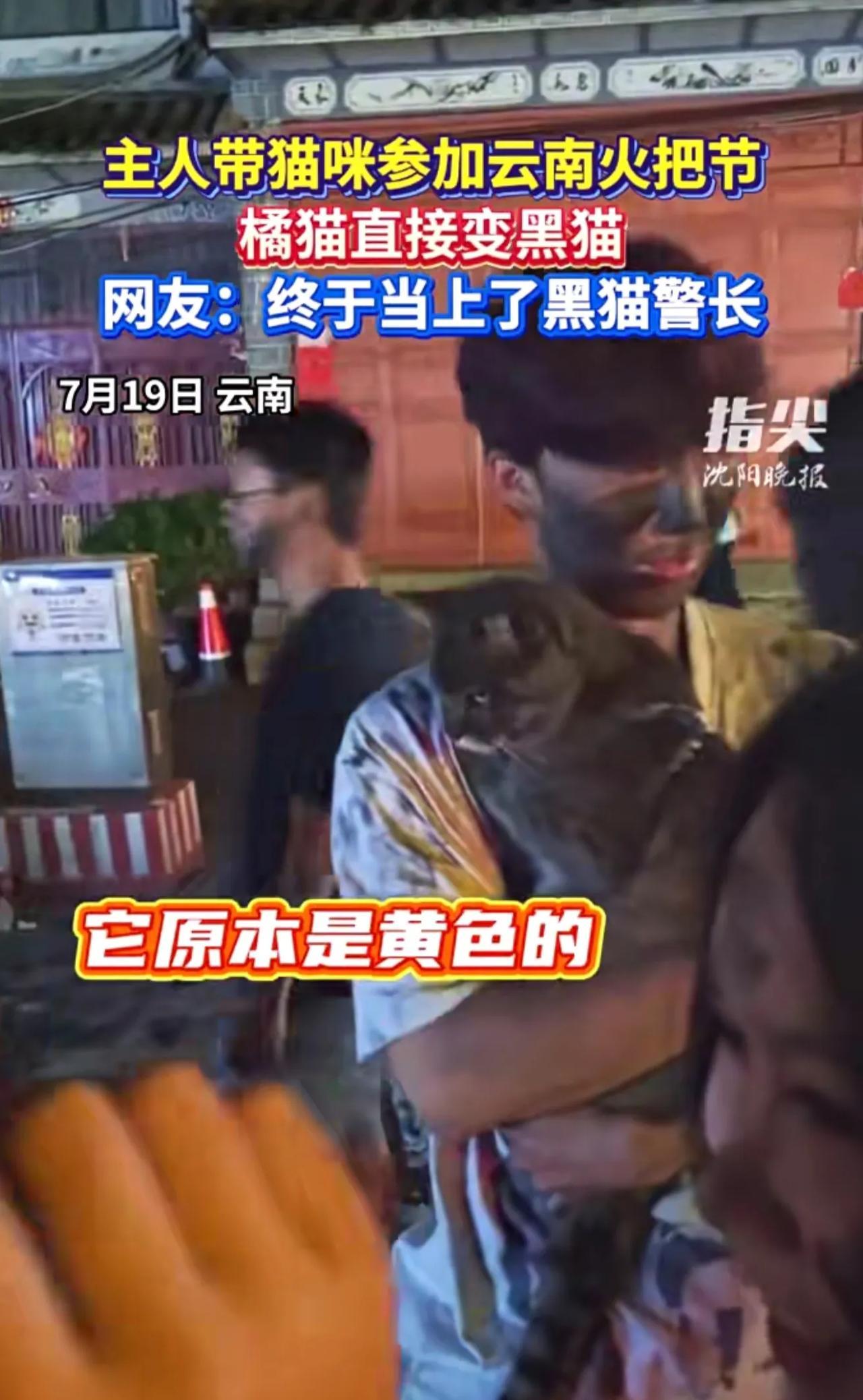 主人带猫咪参加云南火把节 橘猫直接变黑猫 网友:终于当上了黑猫警长