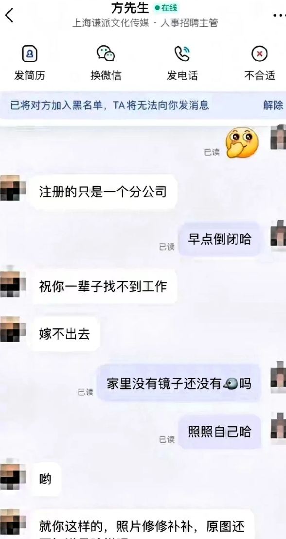 公司招聘主管直接给朱女士来了句话: 祝你一辈子找不到工作,嫁不出去!