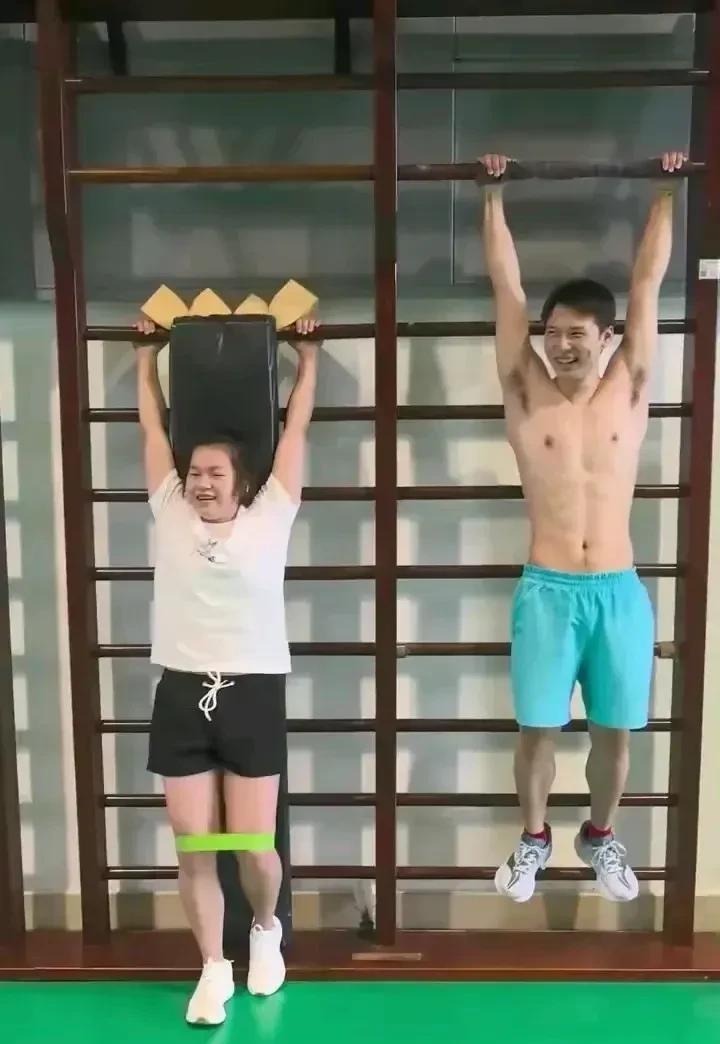 因伤没能出战新加坡世锦赛的全红婵留在队里训练,陈艾森大哥陪着她,看这身材,可真是