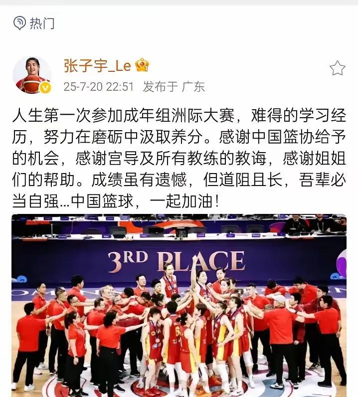 张子宇发文告别亚洲杯!!! 2025女篮亚洲杯已经结束,中国女篮遗憾获得季军,但
